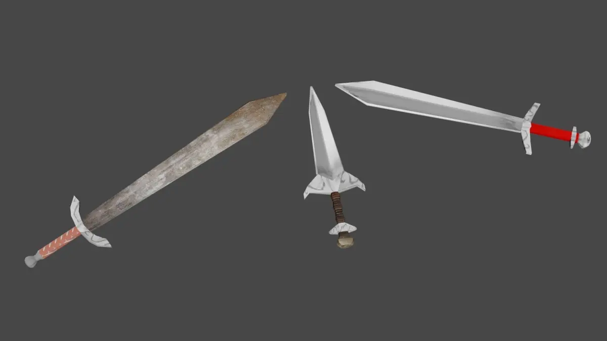 2 sword and a dagger low-poly 3d models made in blender for unity and unreal engine.Easy to use just drag and drop.compatible with mobile devices android and ios.specially designed for making rpg games.