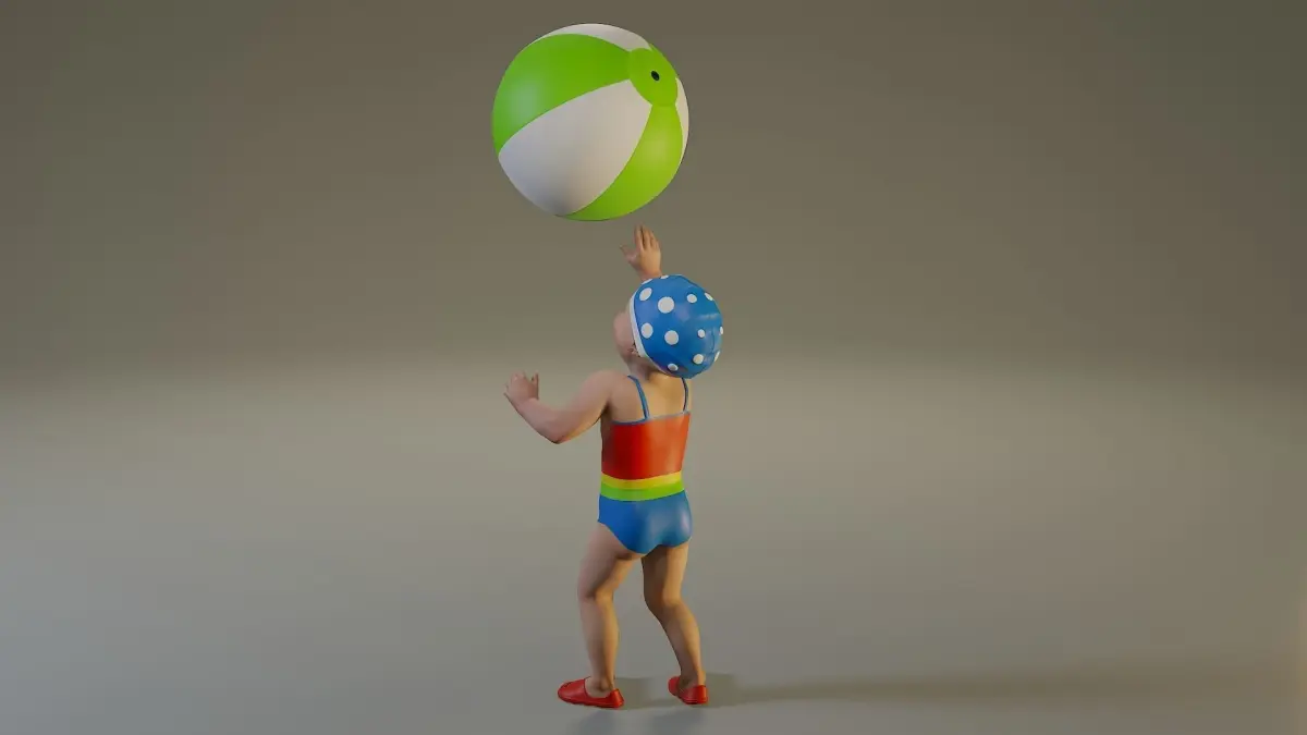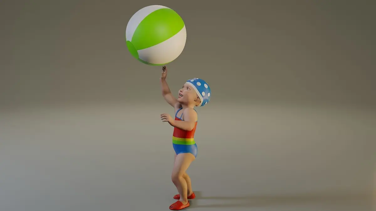 - Child female model with cap, swimsuit and other objects(Depends of the model). Female model for a swimmingpool or other places to swim.