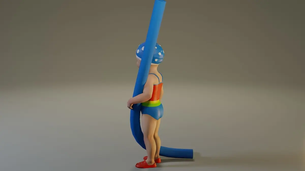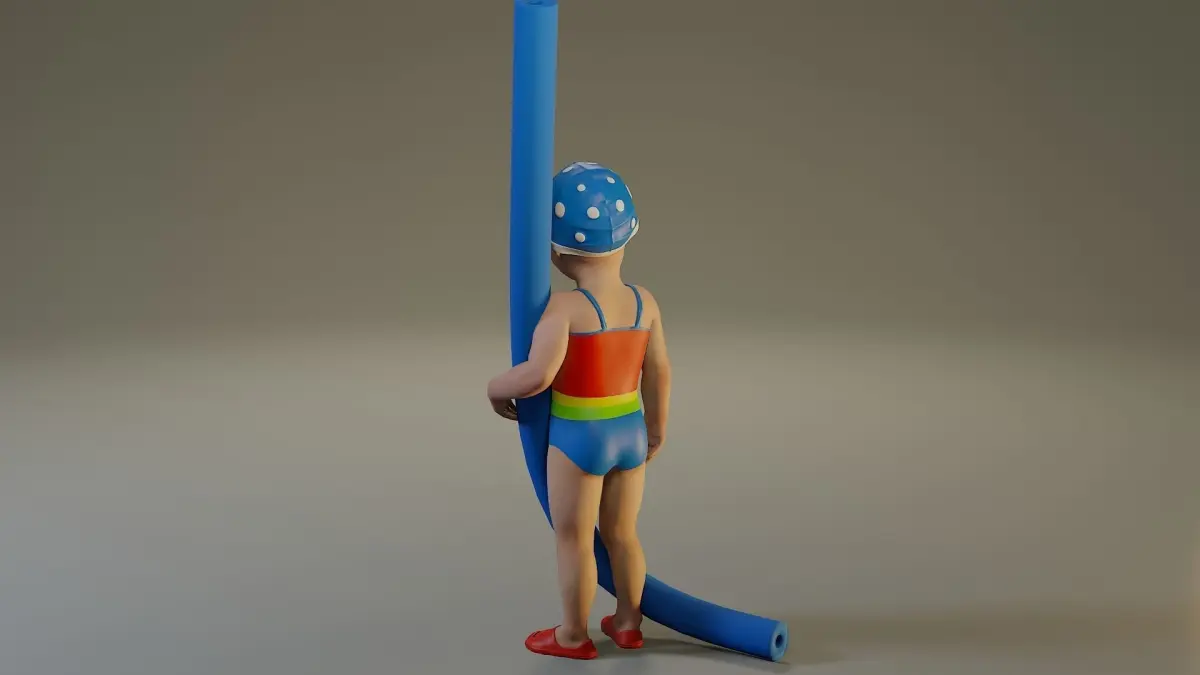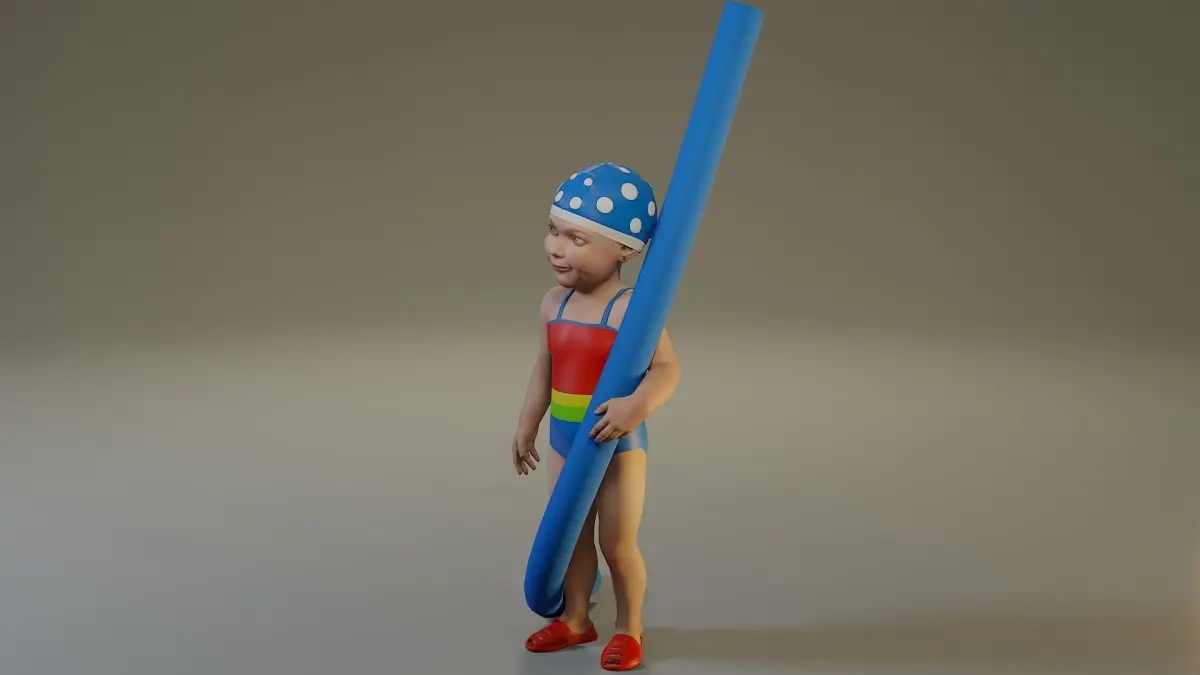 - Child female model with cap, swimsuit and other objects(Depends of the model). Female model for a swimmingpool or other places to swim.