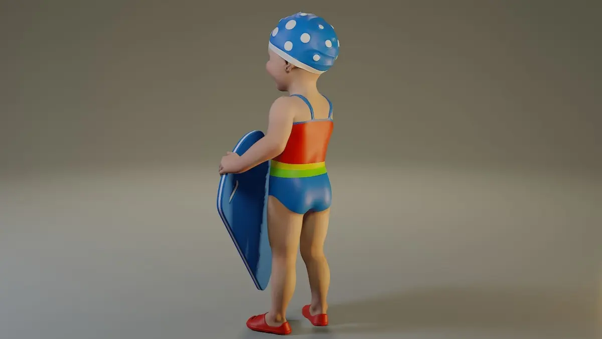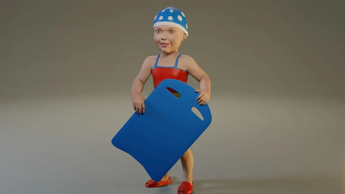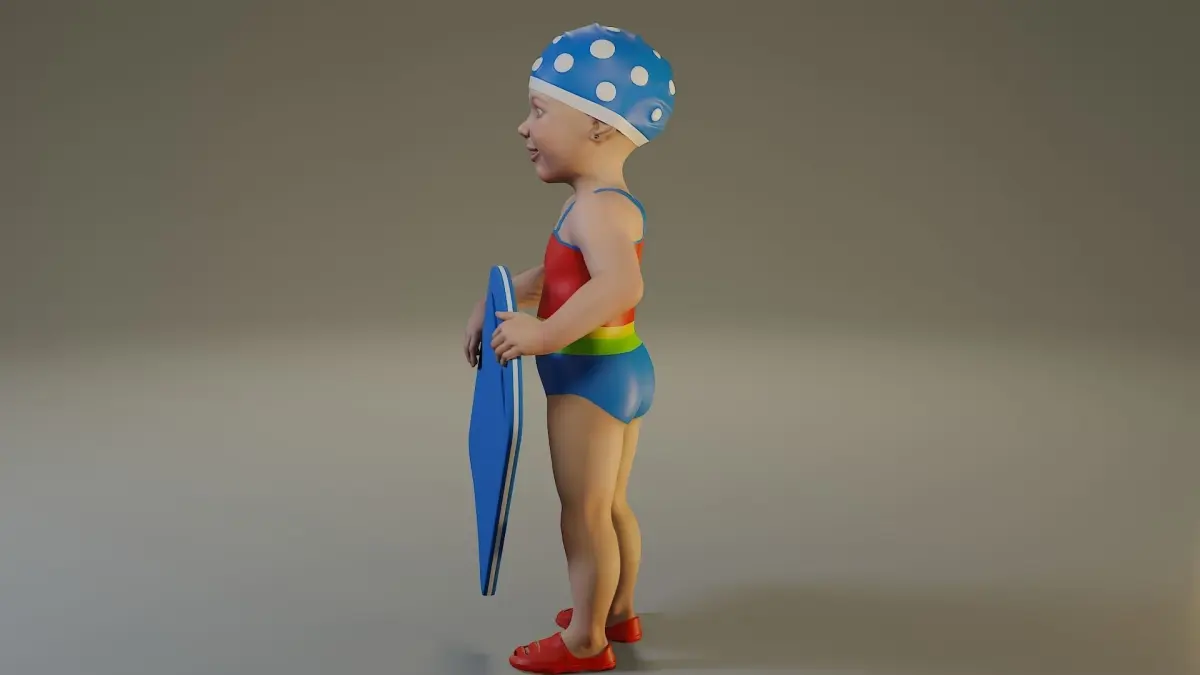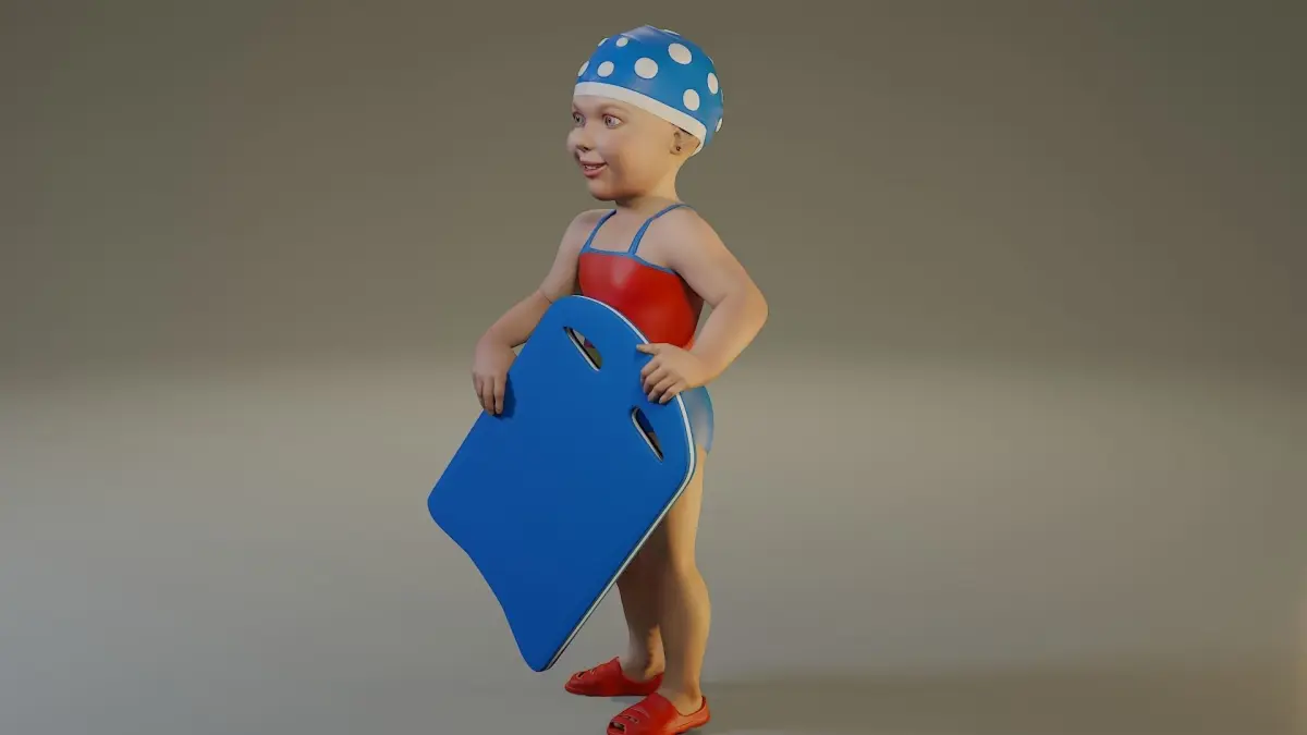 - Child female model with cap, swimsuit and other objects(Depends of the model). Female model for a swimmingpool or other places to swim.