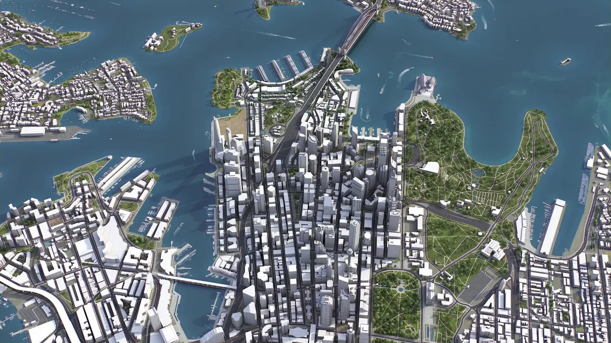 - Full city extents up to 100 x 100 km — or crop to an area of interest for better format compability and scene performance