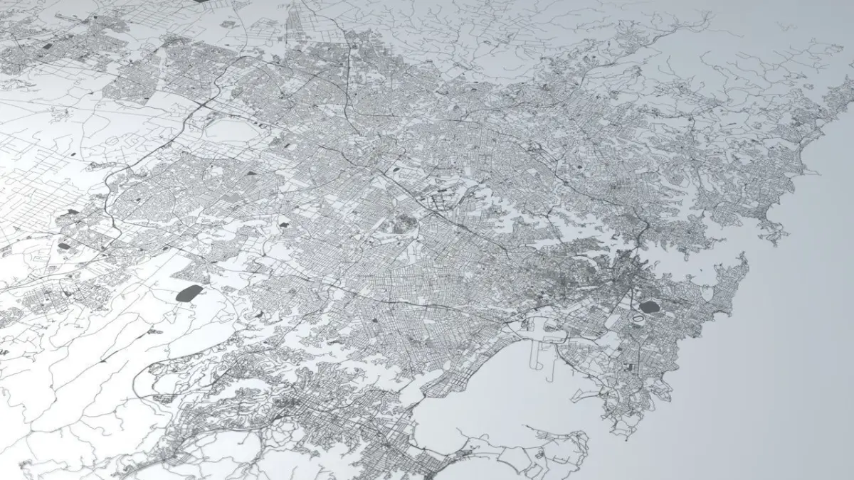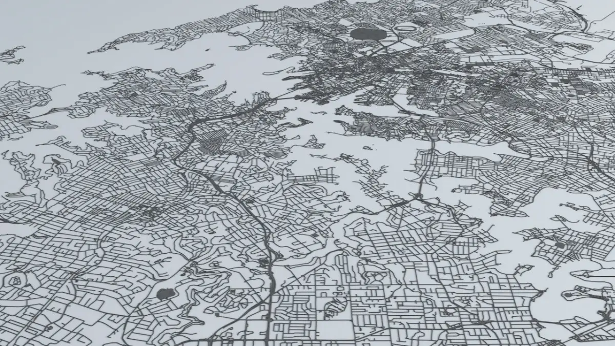 - the model is positioned on a flat surface (road network is on the “floor” - no elevation data included)