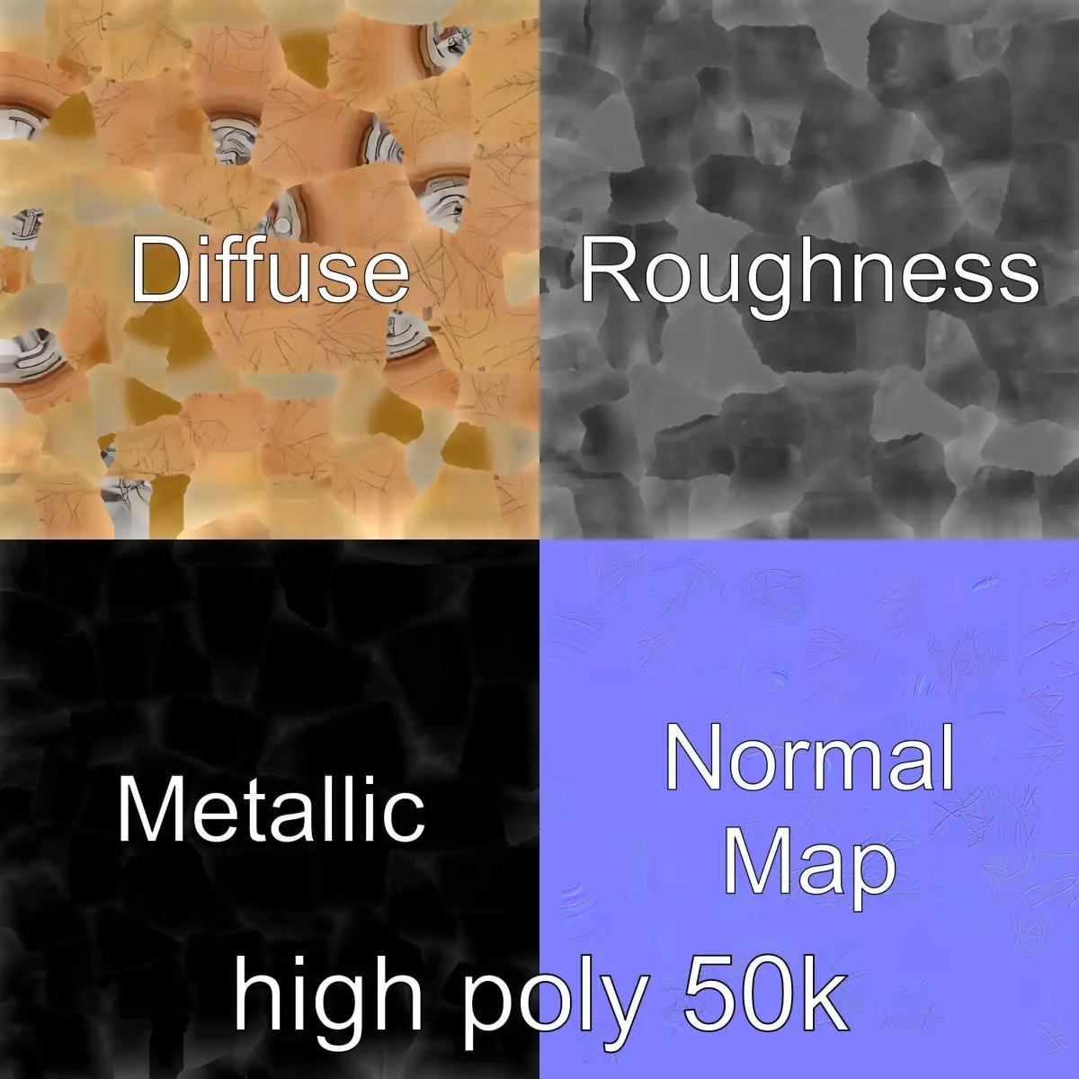 The model's textures are PBR, Diffuse, Normal Map, and reflection/roughness/metallic, which are suitable for any modern rendering engine. All models are accurately unwrapped and have no overlapping UVs. All textures are 4096*4096 in size.