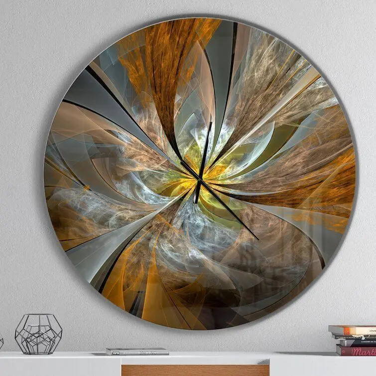 - Certainly not just for telling time, wall clocks are perfect for adding artful appeal to your kitchen wall or acting as a focal point above the living room mantel. It showcases a highly reflective glossy finish and striking, abstract bronze and gray design, creating a sleek and modern look.