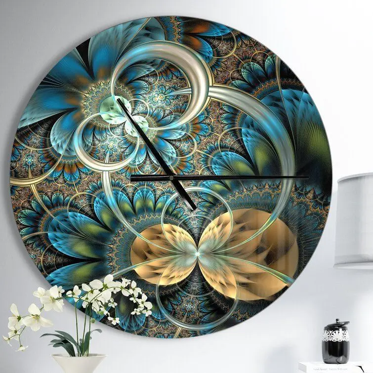 - Certainly not just for telling time, wall clocks are perfect for adding artful appeal to your kitchen wall or acting as a focal point above the living room mantel. Take this one for example: crafted from 100% solid aluminum, it showcases a highly reflective glossy finish and striking abstract fractal design in cool hues, creating a sleek and modern look. It arrives ready to hang: simply insert the included AAA battery.