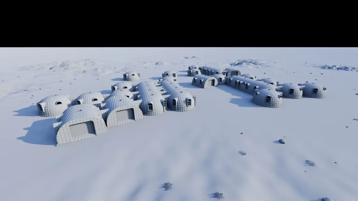 This 3D model showcases a visionary concept for sustainable human habitation on Mars. It depicts a cluster of habitat units designed not just for survival, but for active integration with the local Martian environment (regional ecology). The design utilizes in-situ resources like regolith for radiation shielding and structural components. Key features include interconnected pressurized bio-domes for controlled agriculture and atmosphere recycling, subsurface living quarters for thermal stability and protection, and advanced systems for harvesting and processing local water ice and minerals. The layout emphasizes creating a closed-loop ecosystem within the harsh Martian terrain, representing a crucial step towards long-term, self-sustaining colonization.
