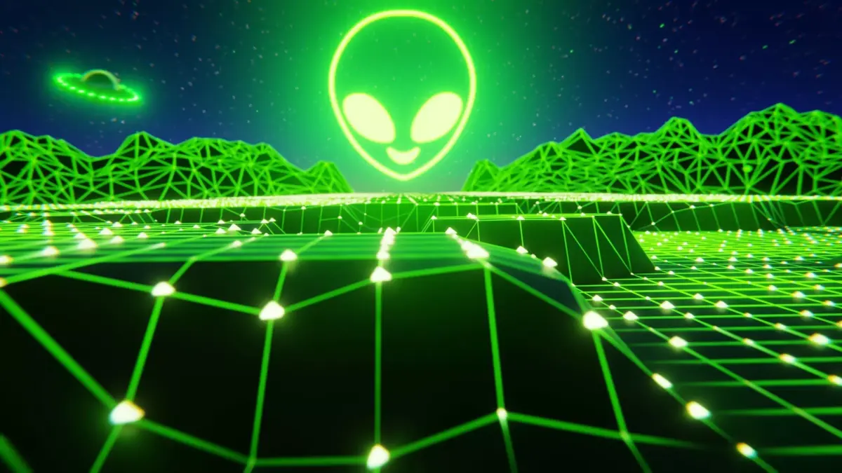The abstract grid ground object is made completely with Geometry Nodes.