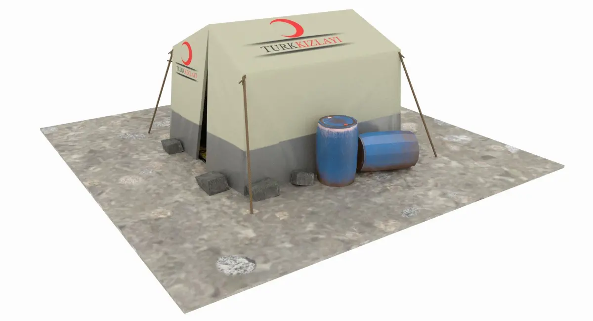 Tents are set up next to each other in a row with the distance between the rows of 4 meters approximately.
