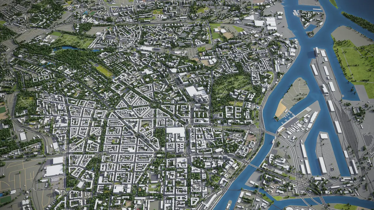 - Full city extents up to 100 x 100 km — or crop to an area of interest for better format compability and scene performance
