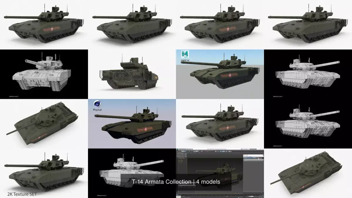 This T-14 Armata Collection is a high quality, photo real collection that will enhance detail and realism to any of your rendering projects. The models has a fully textured, detailed design that allows for close-up renders, and was originally modeled in 3ds Max 2013 and rendered with V-Ray. Signature image scene doesn't included. All models in this collection lays in separate scenes