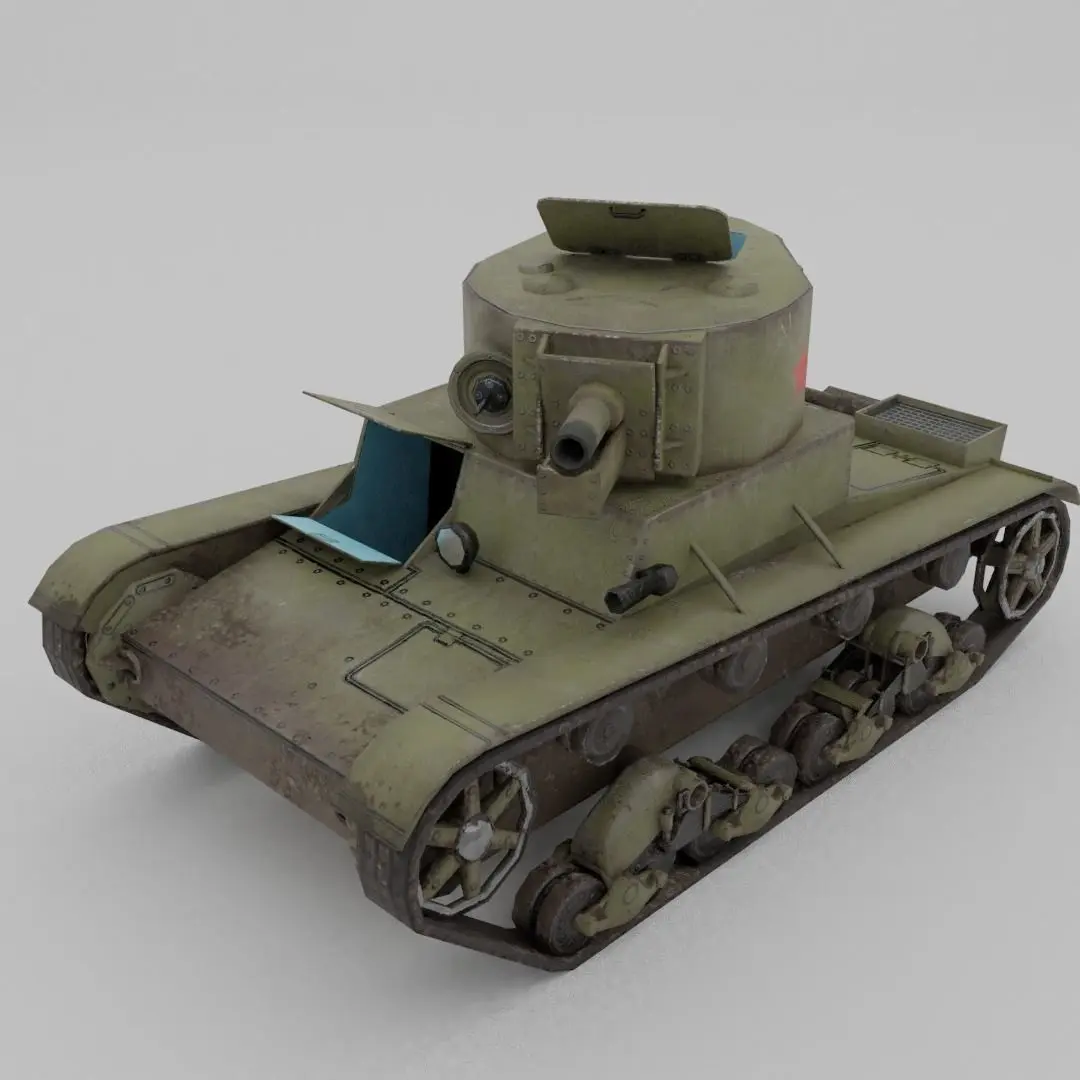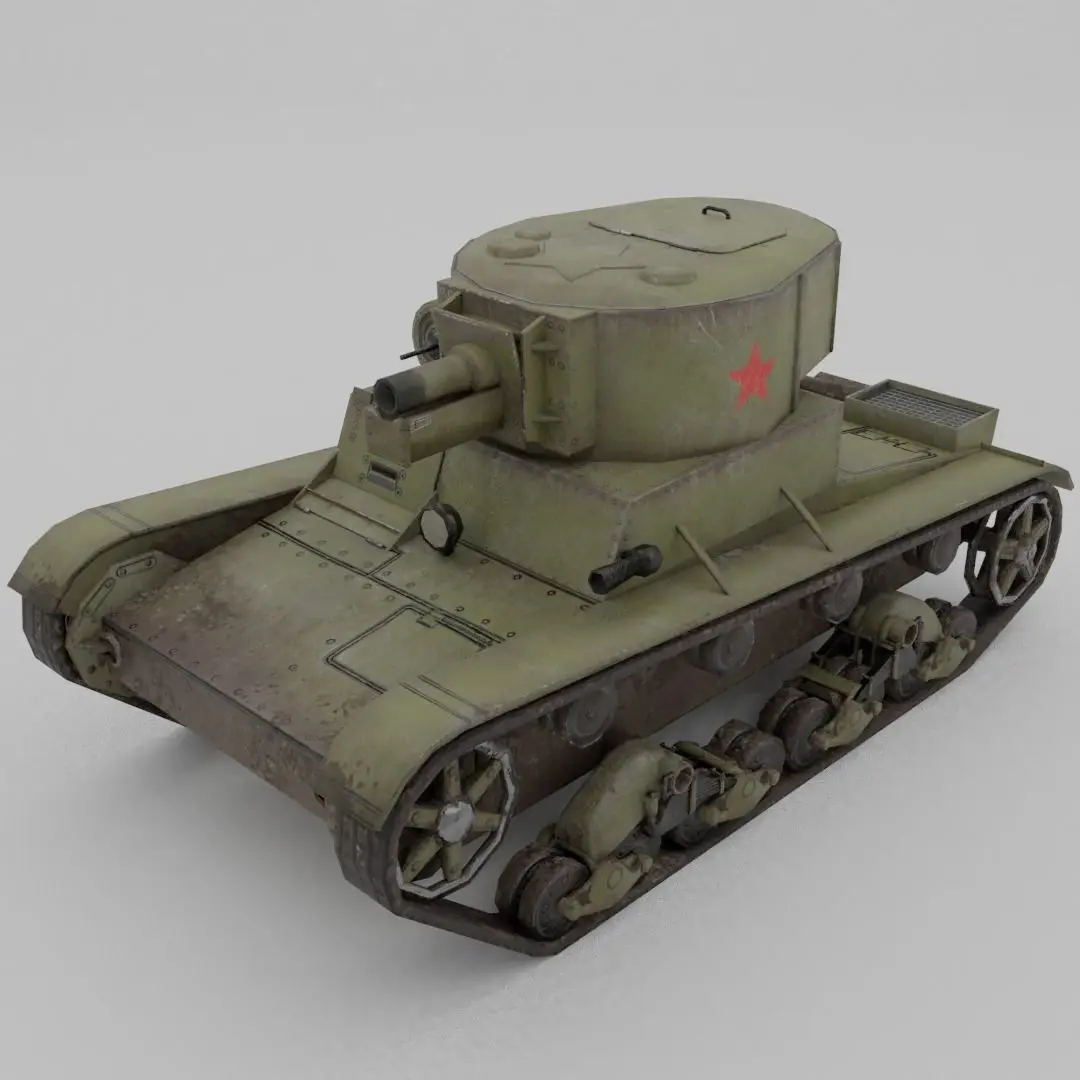Description:The T-26 tank was a Soviet light infantry tank used during many conflicts of the Interwar period and in World War II. It was a development of the British Vickers 6-Ton tank and was one of the most successful tank designs of the 1930s until its light armour became vulnerable to newer anti-tank guns. It was produced in greater numbers than any other tank of the period, with more than 11,000 units manufactured.During the 1930s, the USSR developed 53 variants of the T-26, including flame-throwing tanks, combat engineer vehicles, remotely controlled tanks, self-propelled guns, artillery tractors, and armoured carriers. Twenty-three of these were series-produced, others were experimental models.