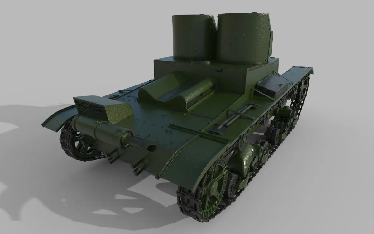 High Poly Soviet Medium Tank T-26 Two towers3D model to any of your projects, games, high-res renderings, visualization, advertising, movies, background projects.//////////////////////////////////////////////Features: