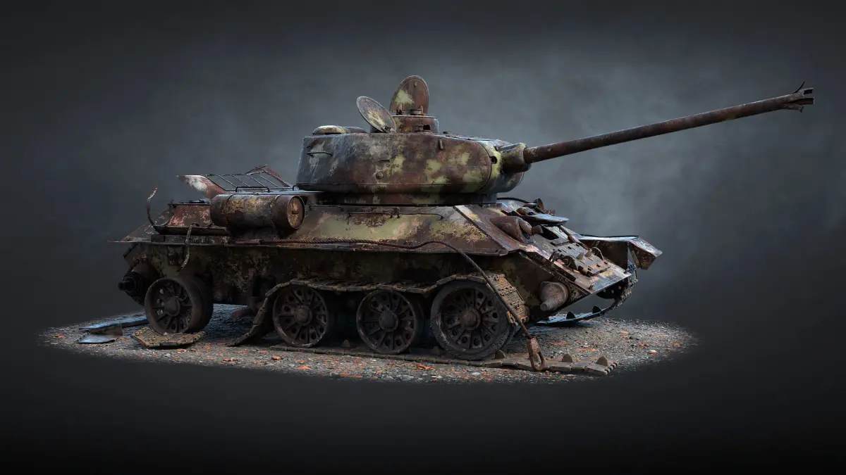 Detailed game ready 3d-model of destroyed Soviet medium tank T-34/85.