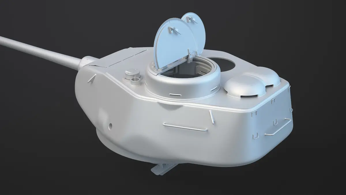 Detailed 3d-model of main parts of tank T-34-85 turret with 85-mm gun ZiS-S-53.
