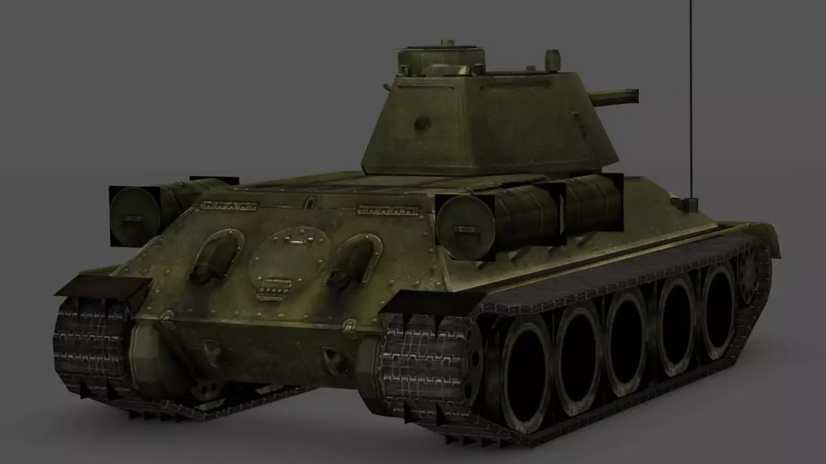 Commander variant of the classic T-34, featuring additional detailing for advanced control and visibility.