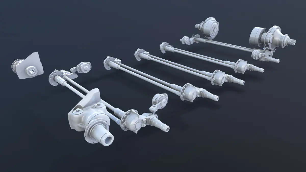 High-polygonal detailed 3d-model of T-54 / T-55 tank torsion bar suspension.