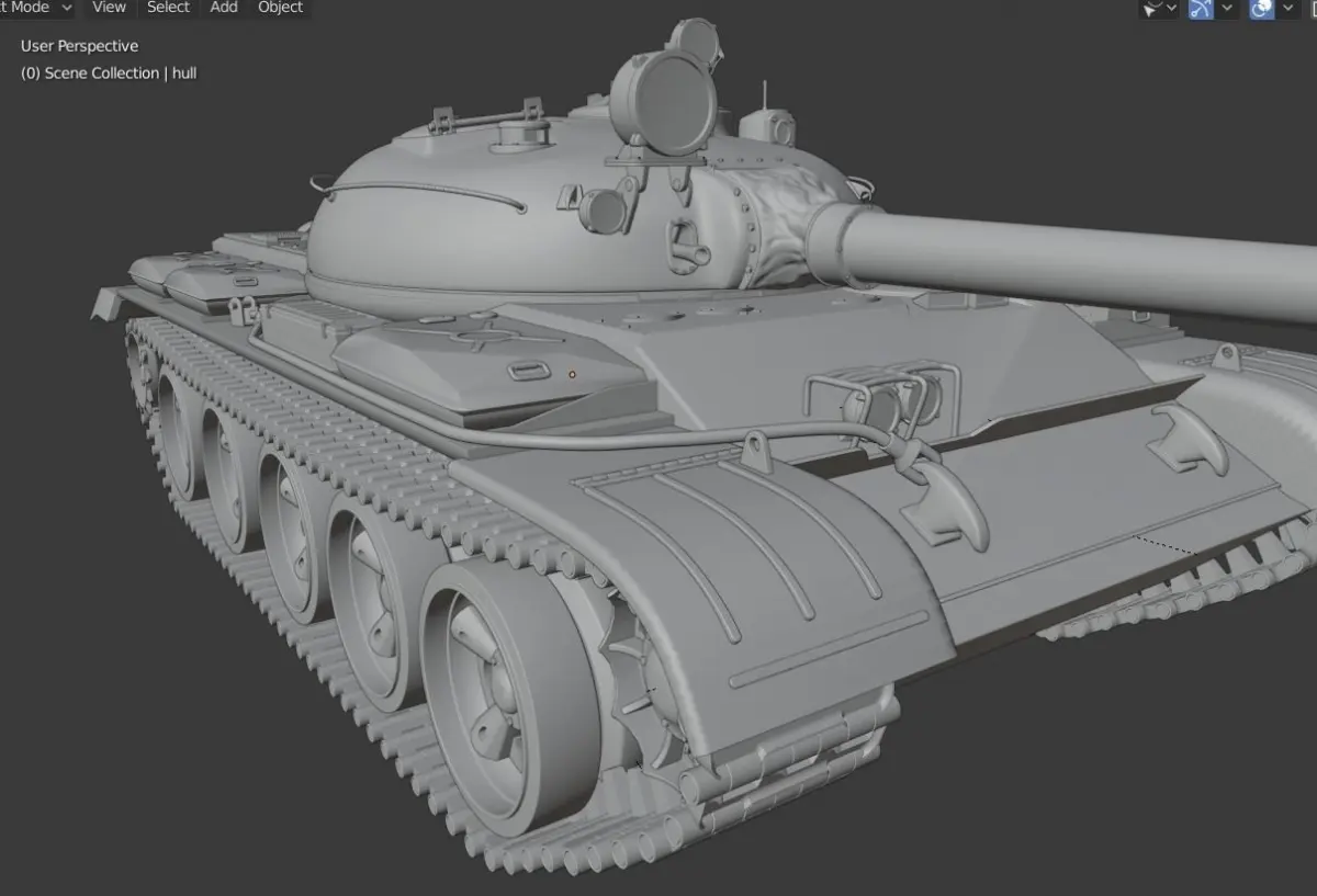 Soviet main battle tank T-62, comes with an .obj, .stl, .fbx and .blend file