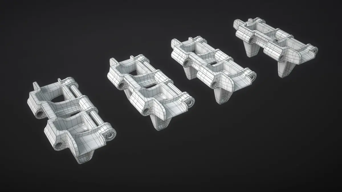 - 2 version of tracks: textured low-poly and high-poly model for subdivision