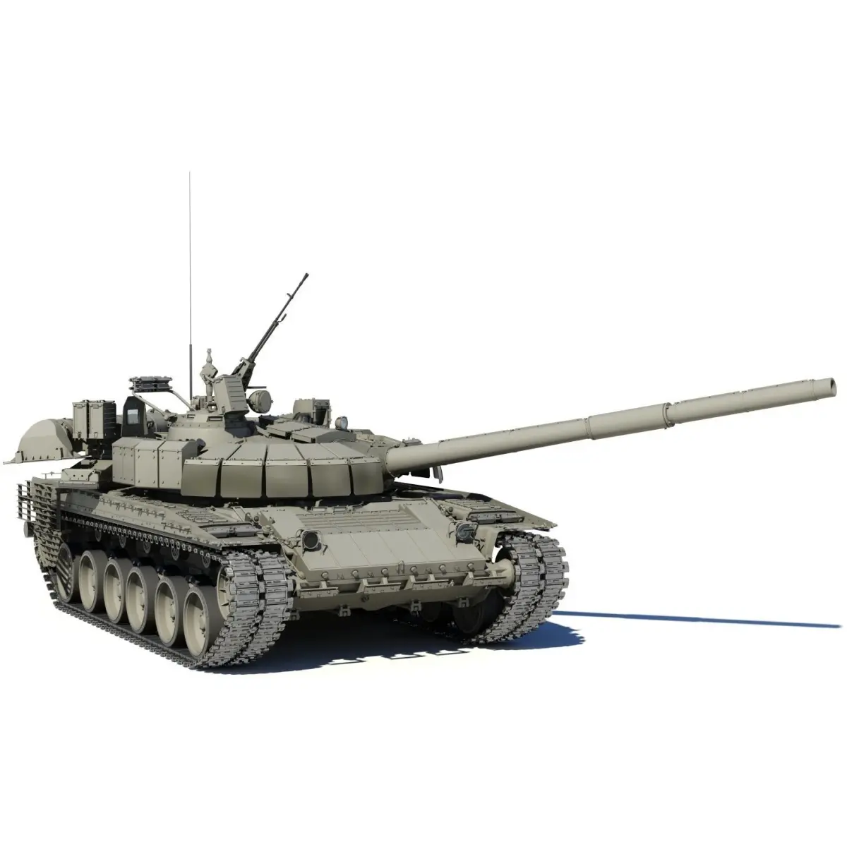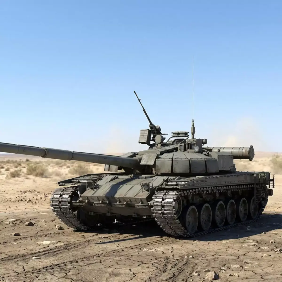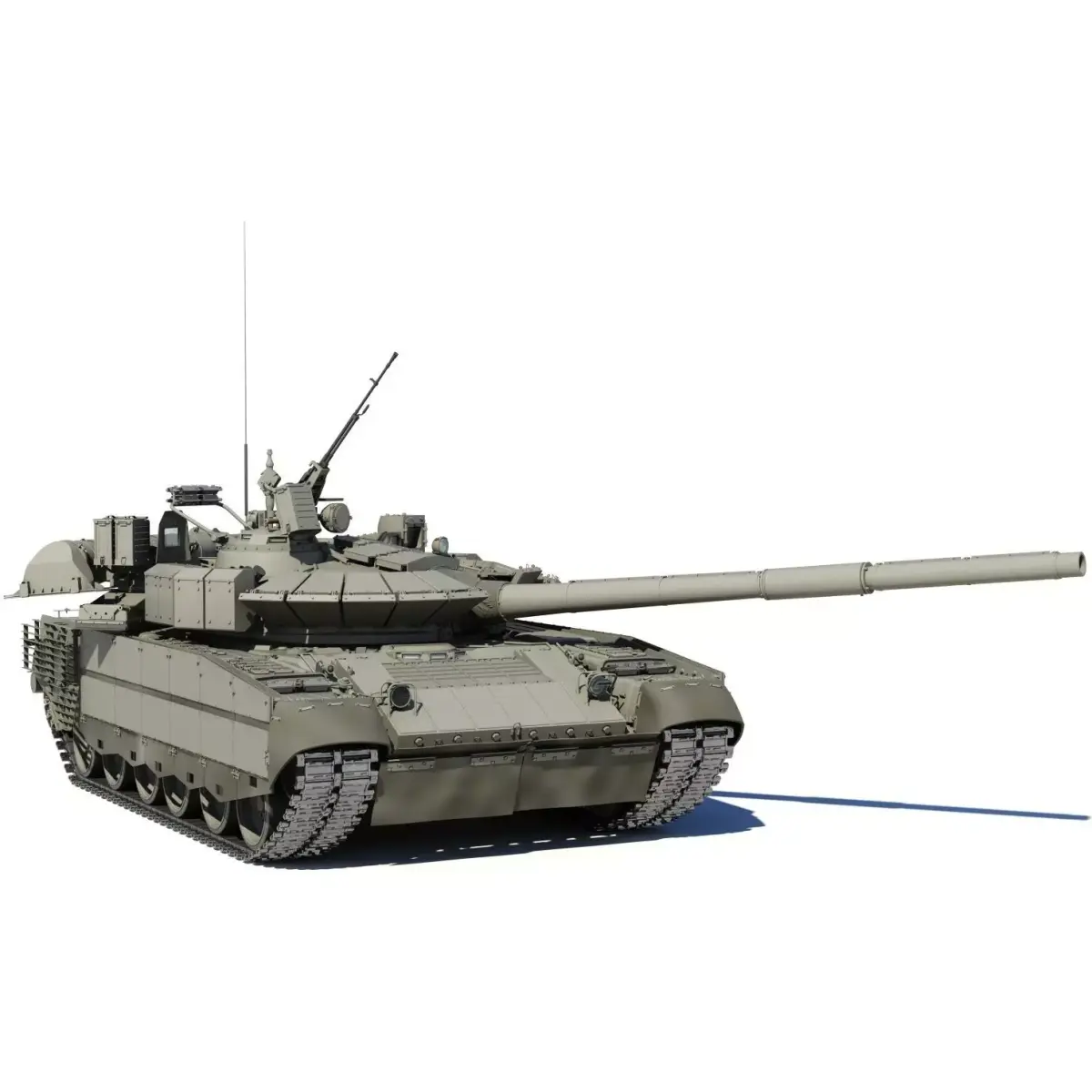 The T-80BVM is an upgraded version of the T-80BV main battle tank. It was first publicly revealed in 2017. The combat weight of 46 tonnes; crew of 3 people; 125-mm gun, 12.7-mm anti-aircraft machine gun; engine GTD- 1250TF, power 1250 hp.; system launch smoke grenades 902B 'cloud'; with hinged dynamic protection 'Relikt'.
