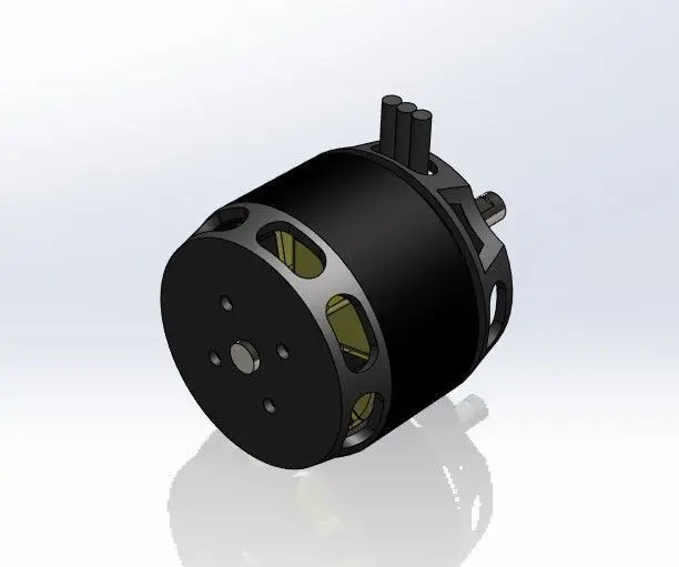 A 3D Model of the AT4120 BLDC Motor with a rotating shaft, created on Solidworks 2022. All the part and assembly files are included. The 3D model of the AT4120 BLDC motor created in Solidworks 2022 consists of an assembly of several parts, including the stator, rotor, shaft and casing. The stator has a cylindrical shape with teeth for the winding wire, while the rotor has a circular shape with permanent magnets arranged in a specific pattern. The shaft connects the rotor to the outside world, which is supported by bearings in the casing. The model allows for a detailed visualization of the motor's components and their interactions, as well as the ability to simulate its performance in various scenarios.
