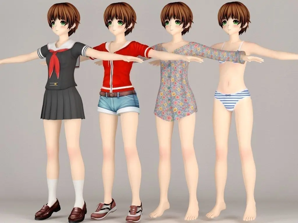 HomeCatalogT pose nonriged model of Hinata anime girl 3D model