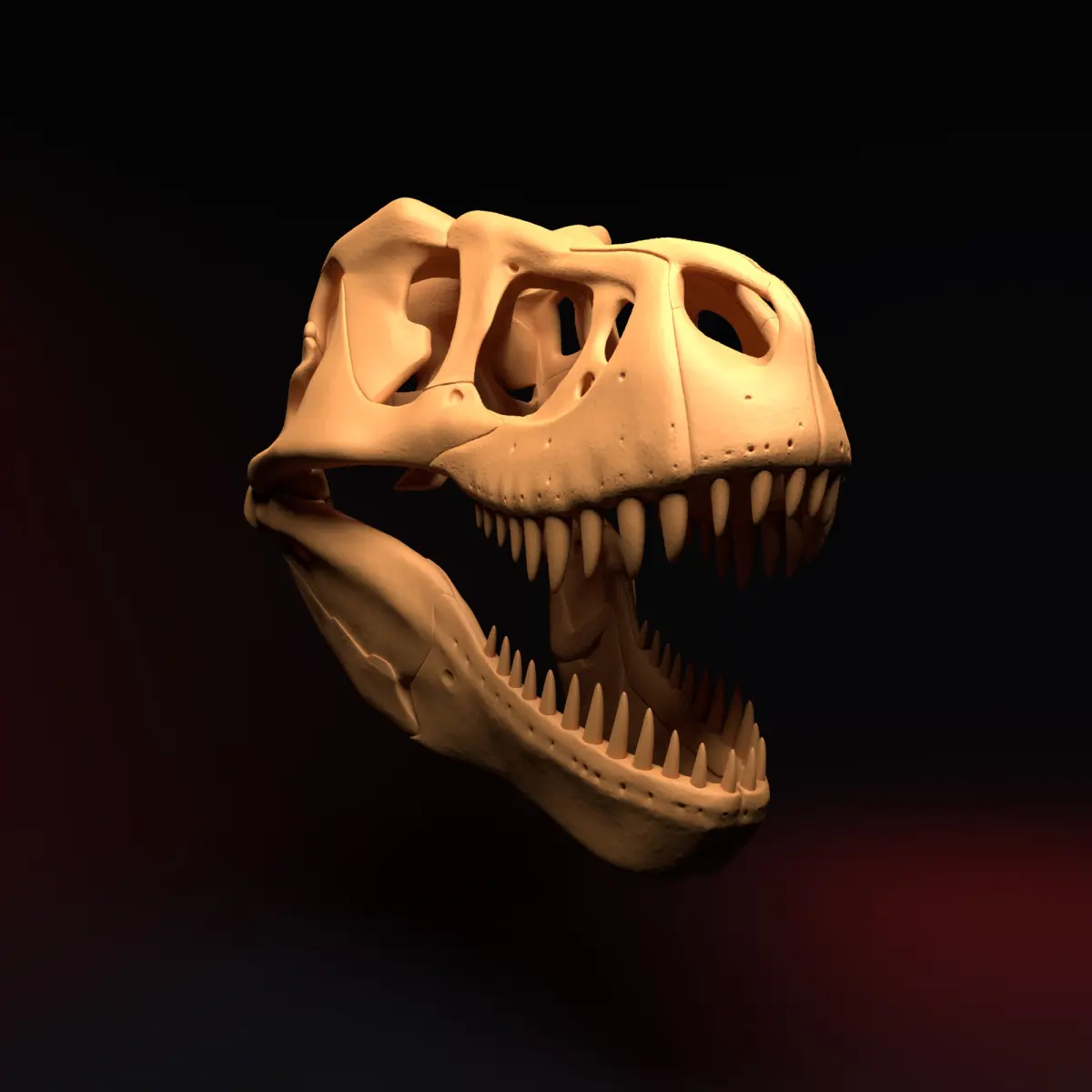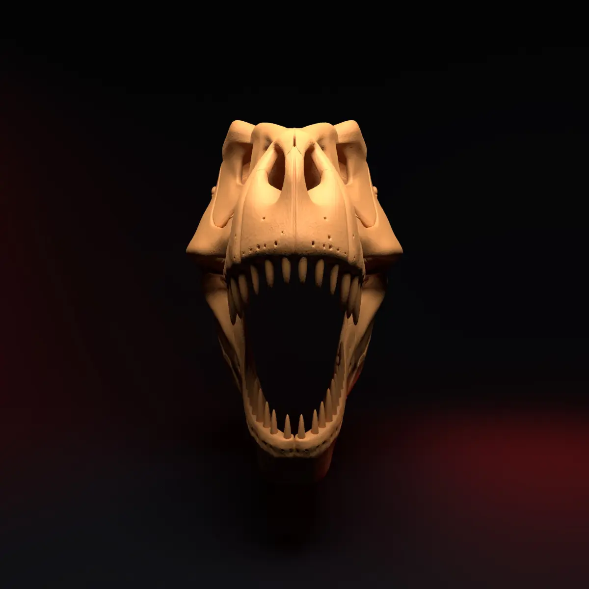 T-rex skull originally created in Blender. Previews were rendered with Blender Cycles Render.Dimensions : upper jaw :17.45 X 10.94x8.2 cmlower jaw :16.86 X 10.48x4.97 cm