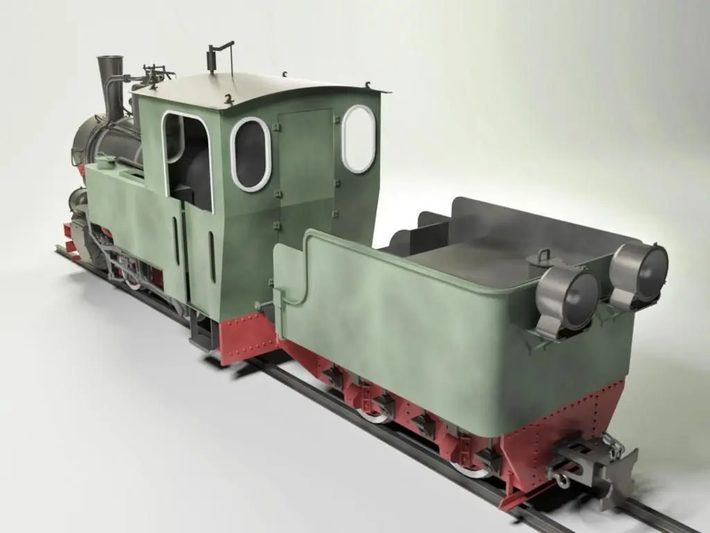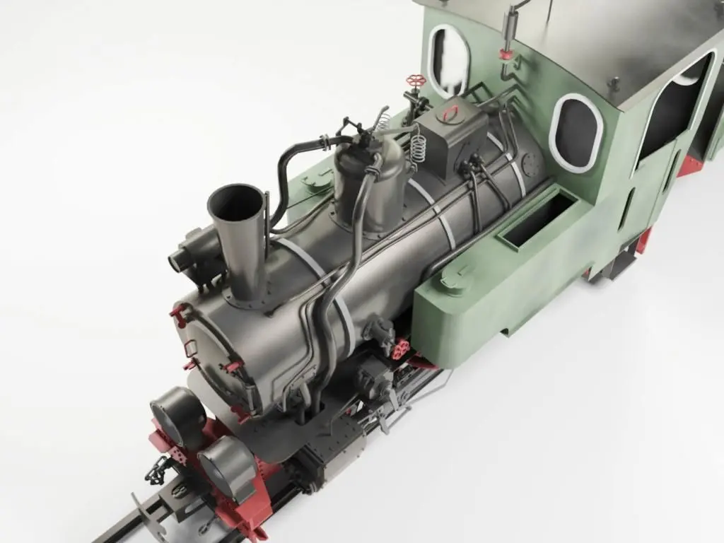 Scale 3D model is divided into individual parts (eg: 'Frame', 'Boiler', 'Braking_system', 'Cabin', etc.). Valve gear is further subdivided. Does not include interior cabin controls. Exterior components are otherwise built to accurately represent the real-life locomotive.