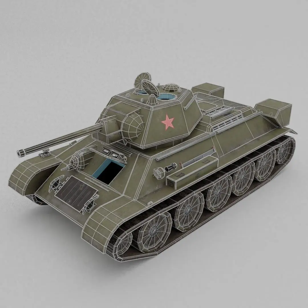 Description:The T-34 is a Soviet medium tank introduced in 1940, famously deployed during World War II against Operation Barbarossa.Its 76.2 mm (3 in) tank gun was more powerful than its contemporaries[5] while its 60 degree sloped armour provided good protection against anti-tank weapons. The Christie suspension was inherited from the design of American J. Walter Christie's M1928 tank, versions of which were sold turret-less to the Red Army and documented as farm tractors, after being rejected by the U.S. Army. The T-34 had a profound effect on the conflict on the Eastern Front in the Second World War, and had a lasting impact on tank design