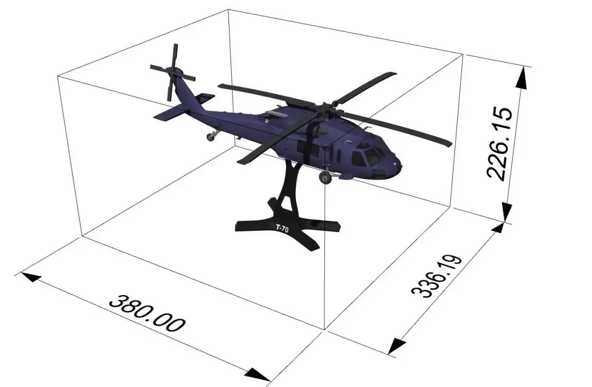 3D model of the T70 Helicopter, a modern utility helicopter inspired by the UH-60 Black Hawk. Ideal for 3D printing, collection, diorama, exhibition or educational projects, with detailed design and realistic proportions.