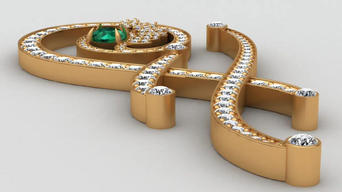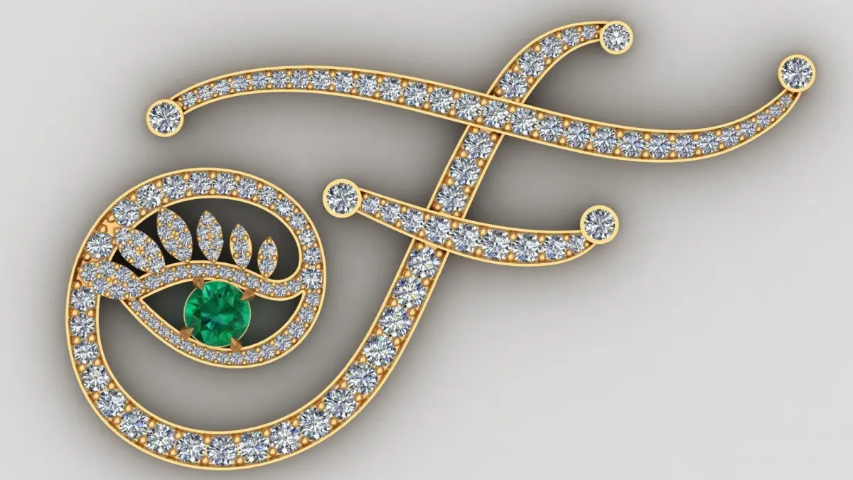 Tabayer F Letter Diamond Emerald Gold Pendant 3D print model