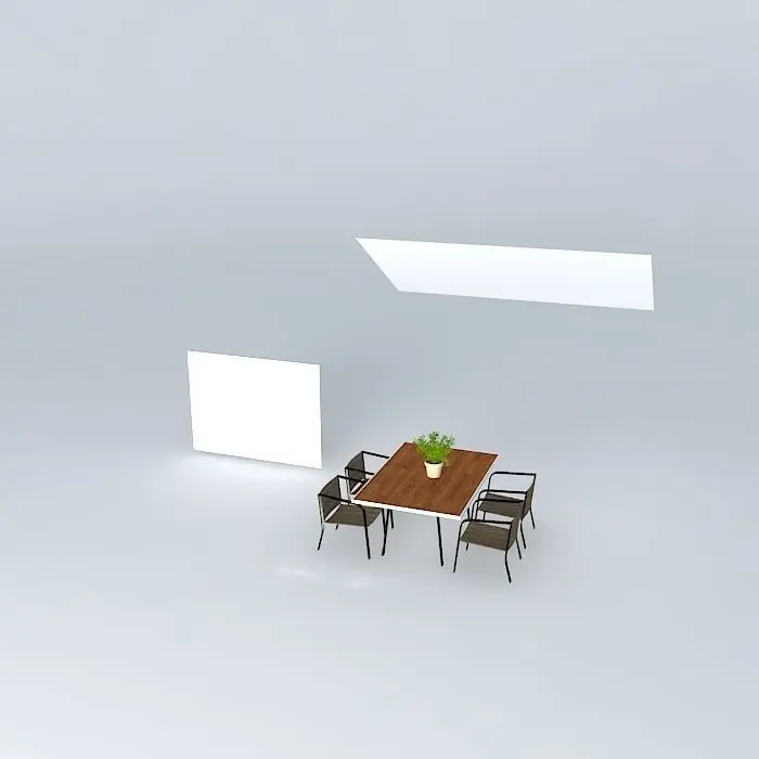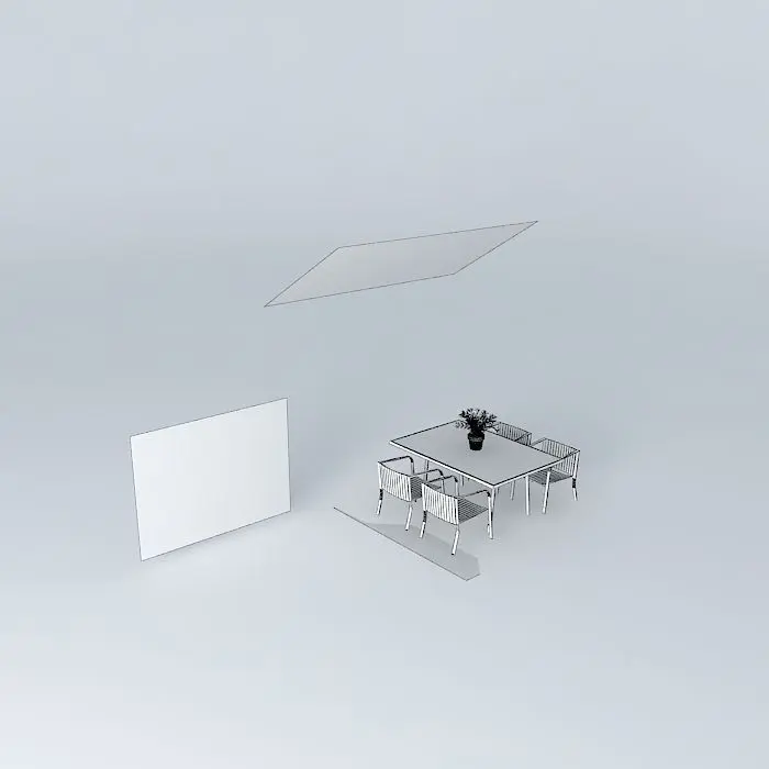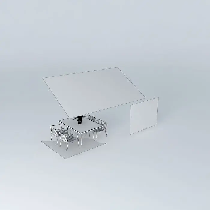 This 3D model was originally created with Sketchup 7 and then converted to all other 3D formats. Native format is .skp 3dsmax scene is 3ds Max 2016 version, rendered with Vray 3.00 TABLE AND CHAIR ALUMINIUM AND FIBER