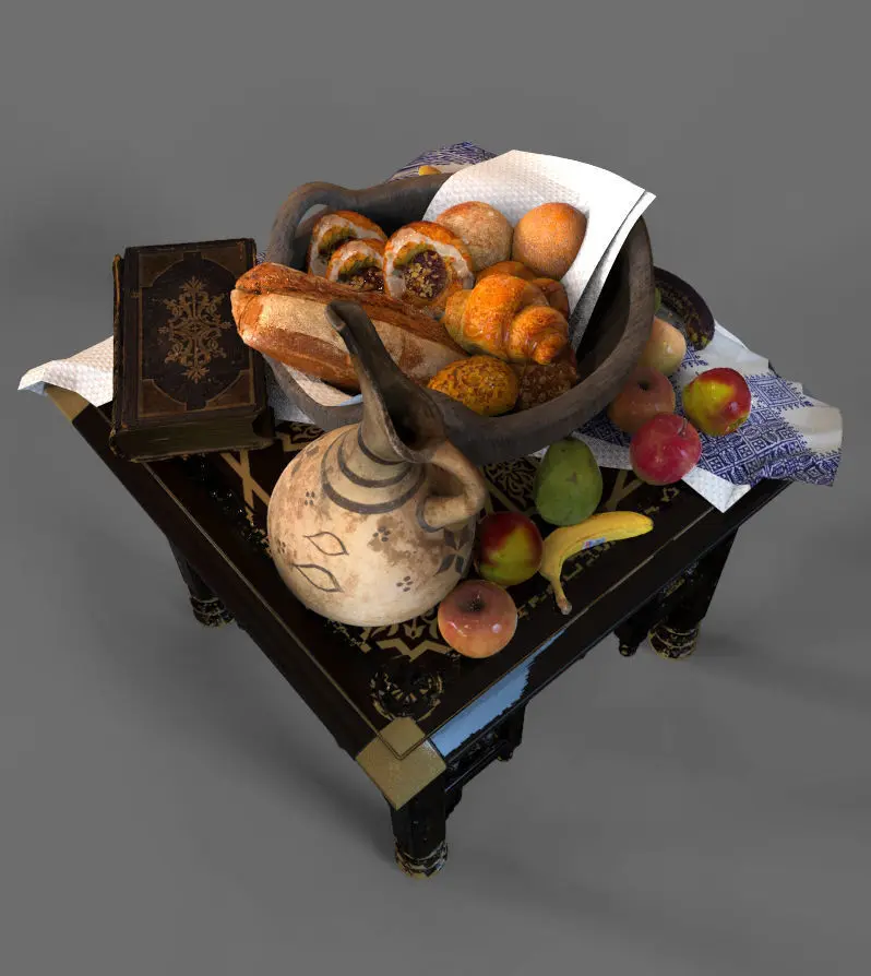 Moroccan decorative food set for kitchen and Living room. Will be a perfect addition to your interior renderings. Suitable for both contemporary and classic style interiors. Inspired by canvashomestore blog.All elements converted into editable polys and all materials are ready for merging into your scene. All additional file formats as well as textures stored in a .RAR archive.