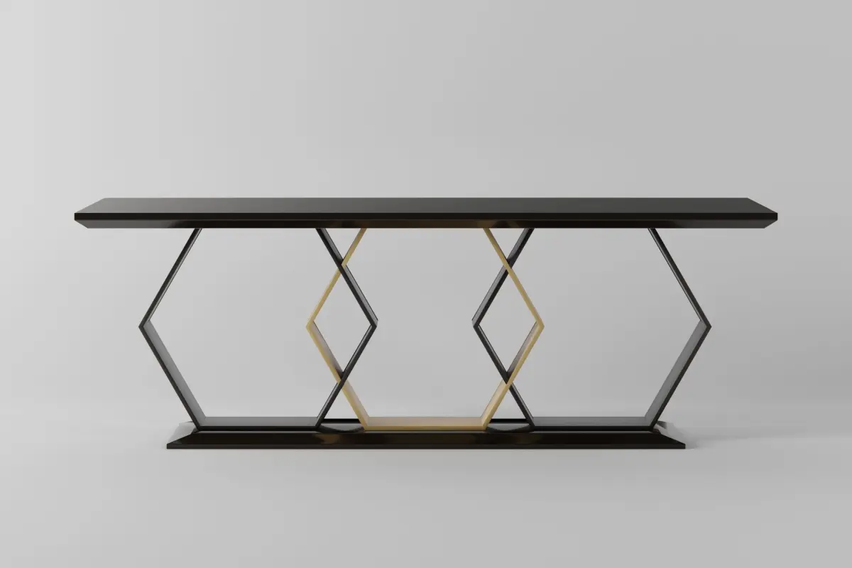 A table with a modern luxury design where the marble is painted black goes perfectly with white furniture, black furniture and also light-colored furniture. The design is a perfect combination of black and gold, which therefore creates a luxurious look. It can also be used in furniture design projects or video games.