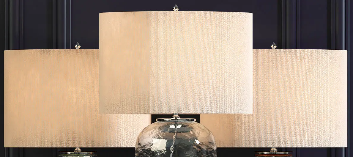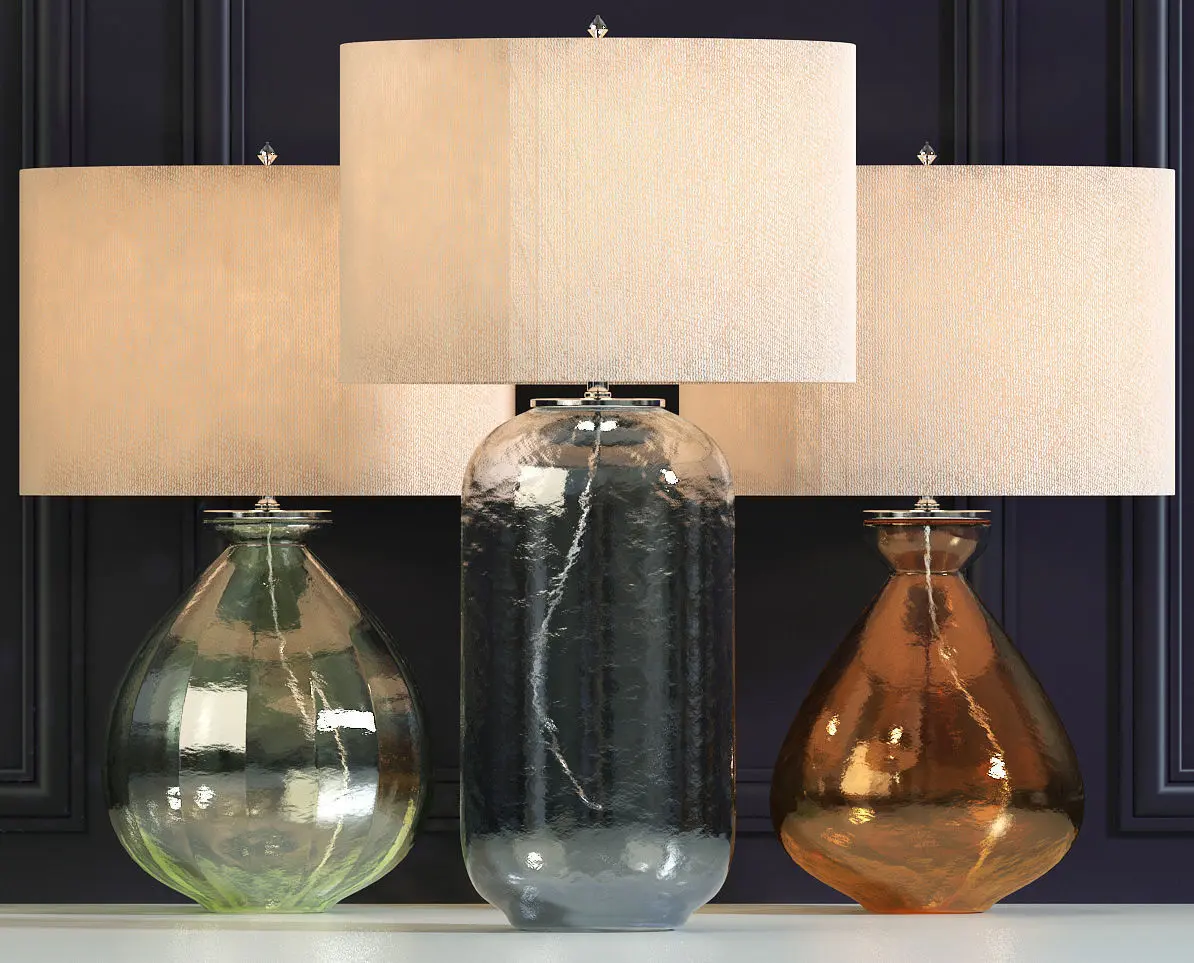 Table lamp 7 contains three lamps with a modern shaped glassy finish base with a shaeder it will be a best choice for any bed rooms, created in 3dsmax