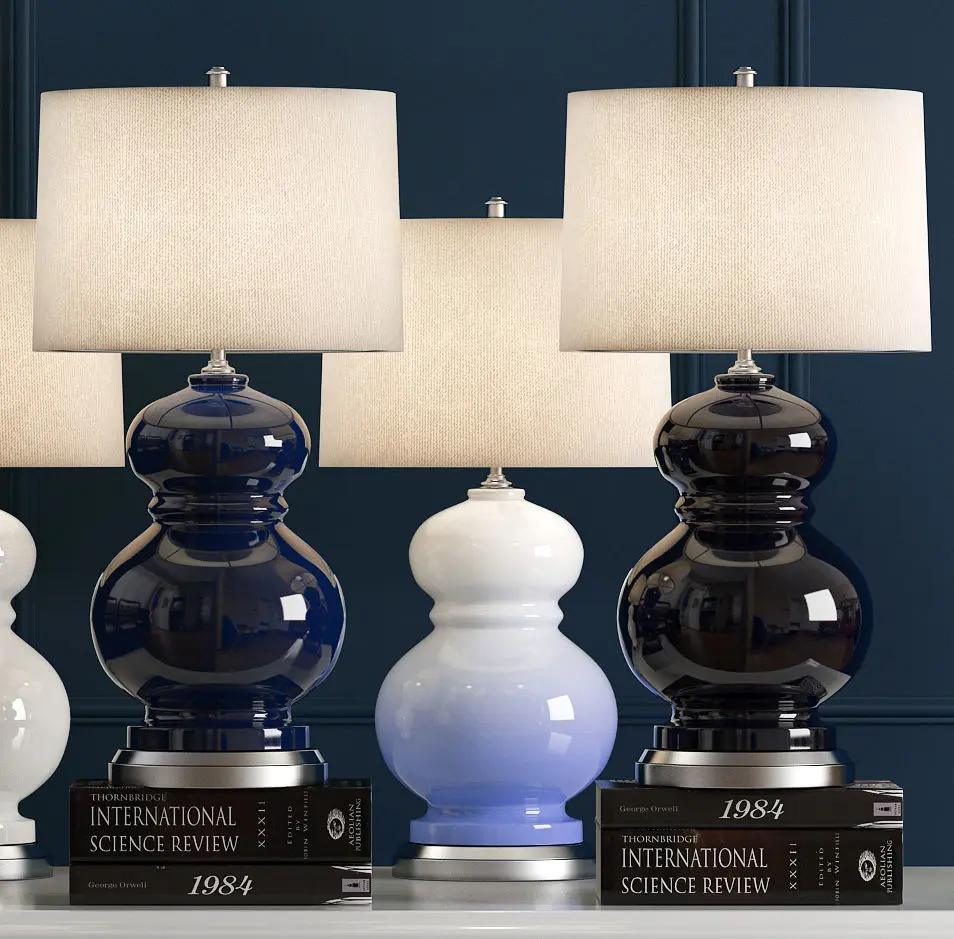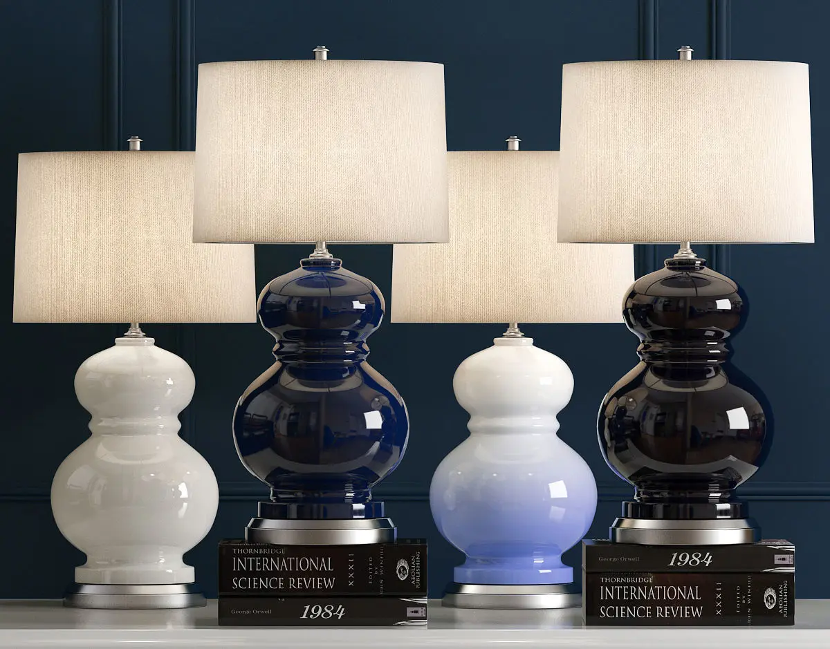 table lamp 6 contains four lamps with a modern shaped glassy finish base with a shaeder it will be a best choice for any bed rooms, created in 3dsmax