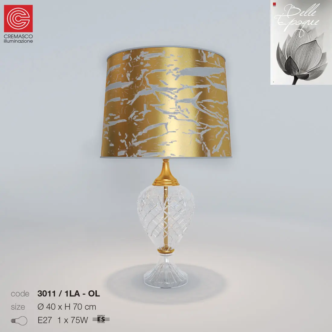 Table lamp with a diameter of 400 mm, 700 mm, gold color, fabric lamp shade.