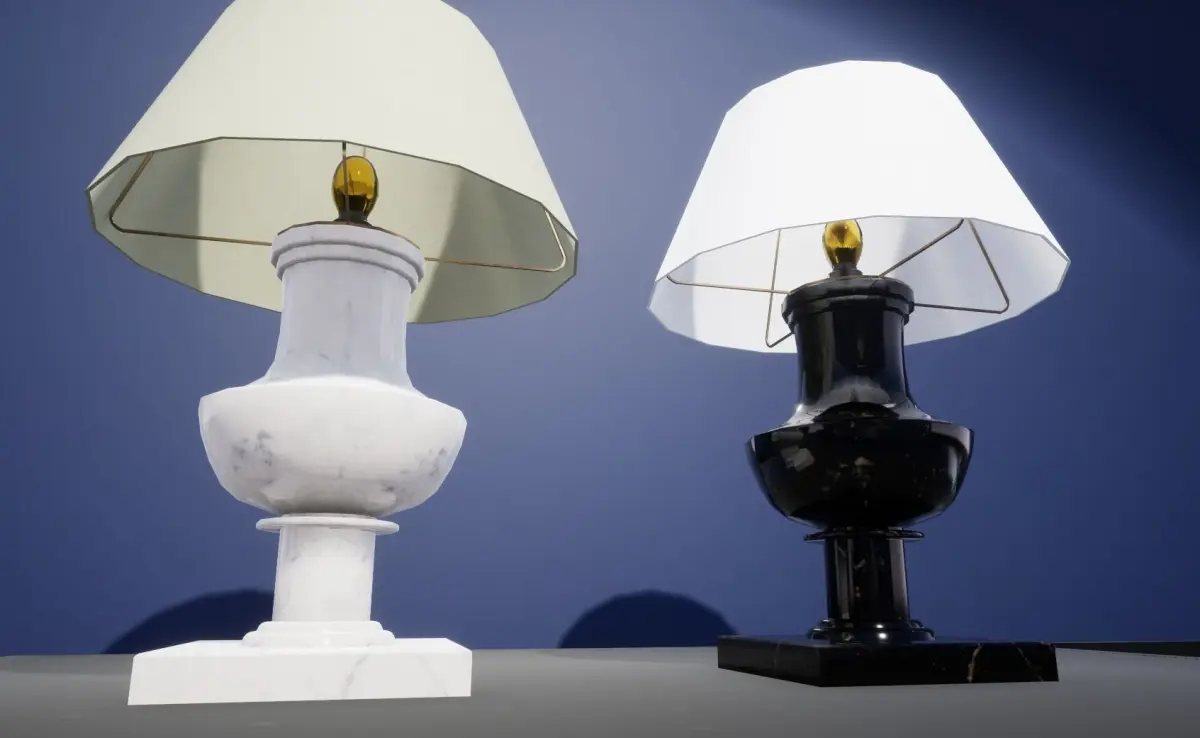 A Table Lamp that comes with 5 textures (Two different base colors, 1 metallic, 1 roughness and 1 normal)