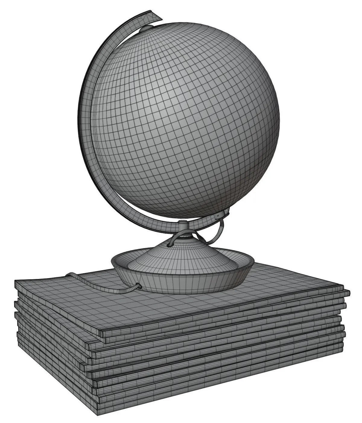 This realistic model includes the table lamp globe-shaped set on books. Model prepared for 3d architectural visualisations and other graphic works.