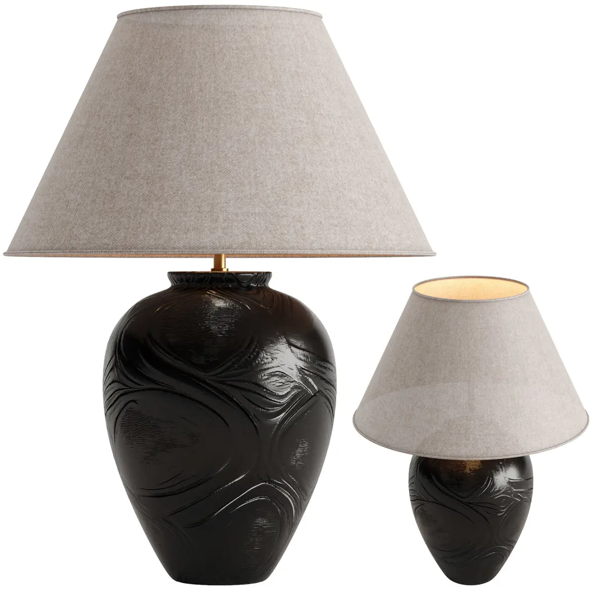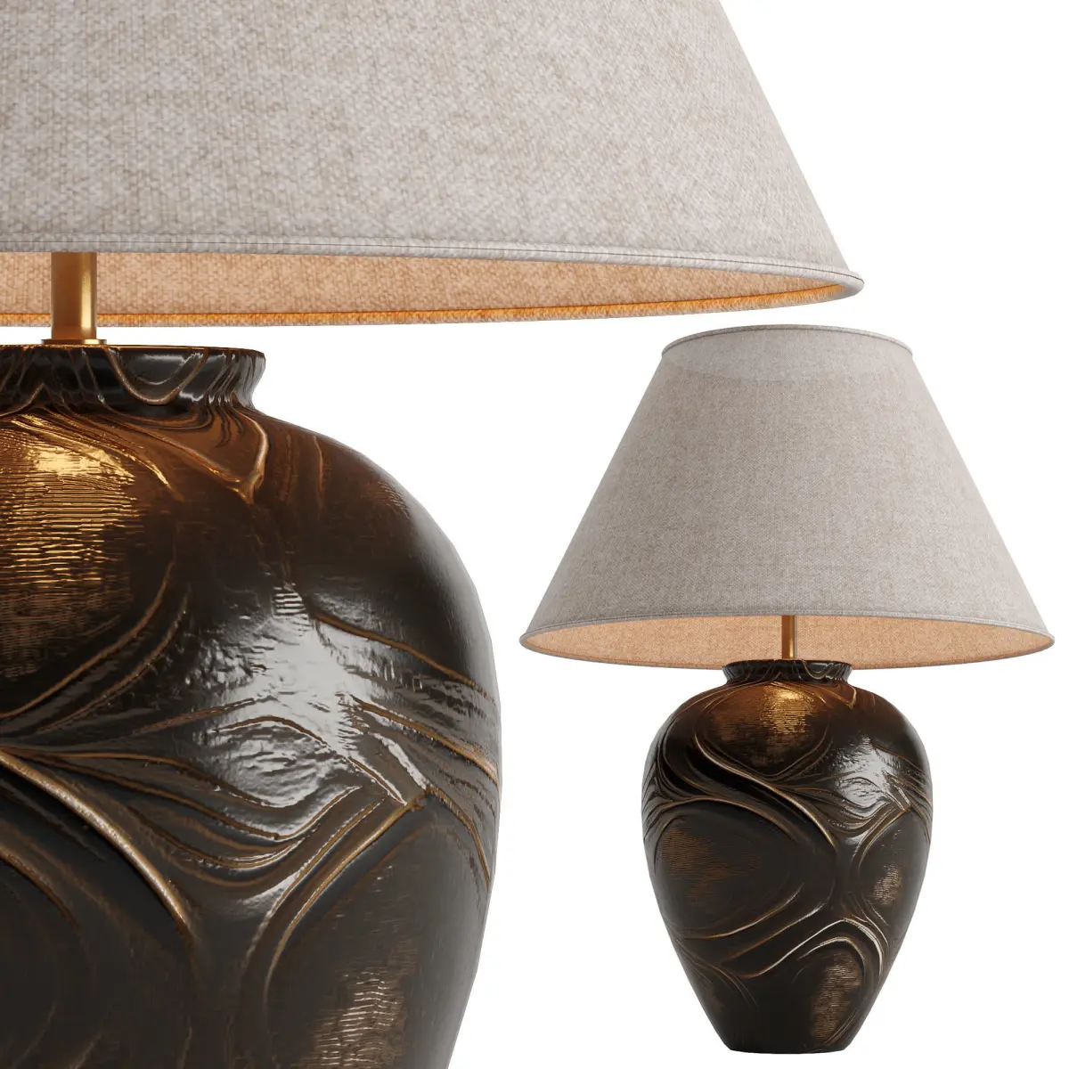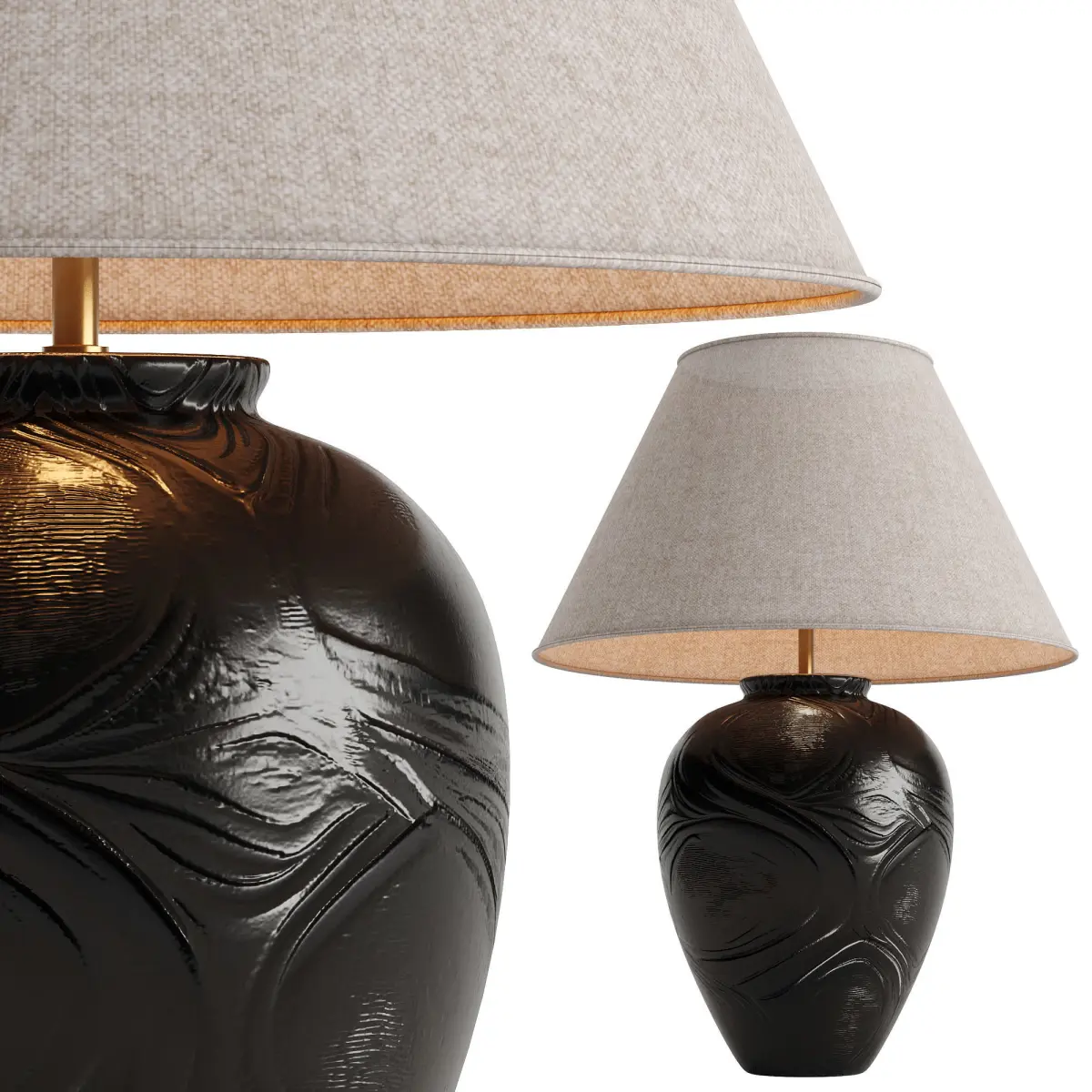 This table lamp in black and black gold will add a touch of luxury to your projects.It is made of three materials (ceramic, metal, fabric) in one PBR unwrap material.