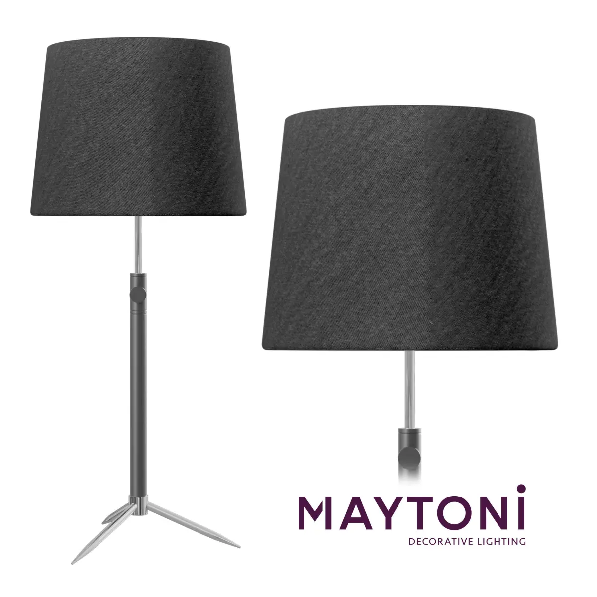 Table lamp Monic MOD323-TL-01-B Maytoni ModernMetal frame. Telescopic tube enables to adjust base height. PVC lampshade is covered with cloth. Dezente Stehleuchte mit höhenverstellbarem Teleskoprohr. PVC-Lampenschirm mit Stoffbezug.Series: MonicCollection: ModernStyle: Maytoni ModernType of lamp: Table lampHeight, mm: 700Number of bulbs: 1Cap: E27Power: 40WFrame material: MetallColour: Black + ChromeLampshade:Top diameter, mm: 280Bottom diameter, mm: 350Height, mm: 280Material of shade: Fabric on PVC