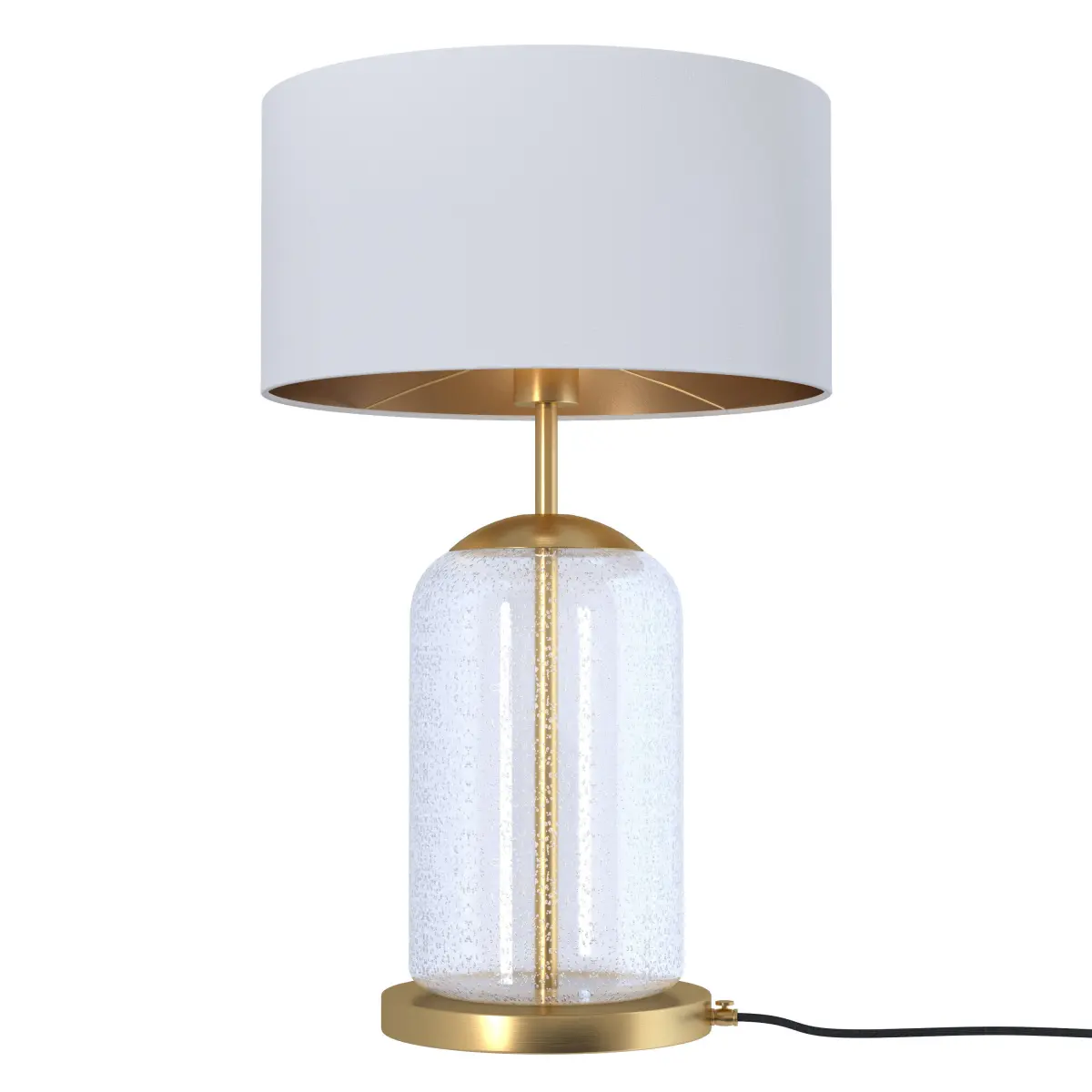 Table lamp sku 31803 by Pikartlightsmaterials used: Brass, hand blown glass with bubbles effect, lampshade of two different colors (black and white)Made in Ukrainemore information: https://pikartlights.com/shop/torshery/nastilna-lampa-art-31803/
