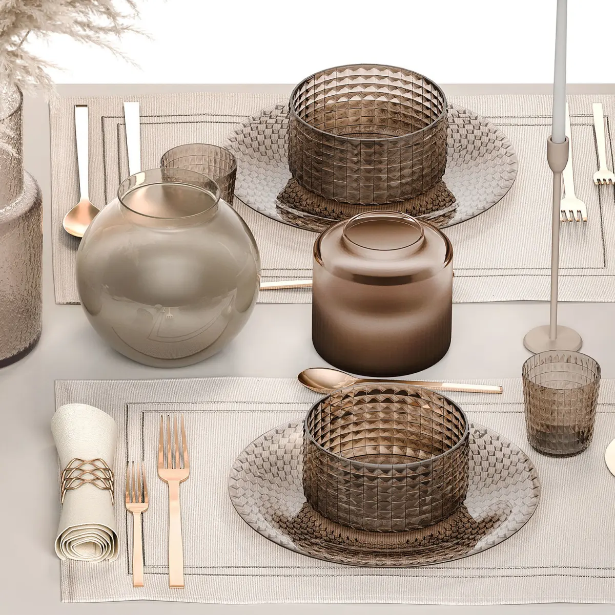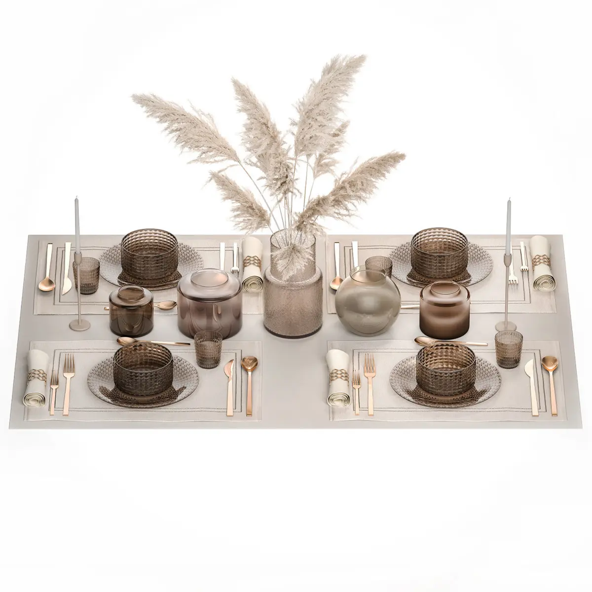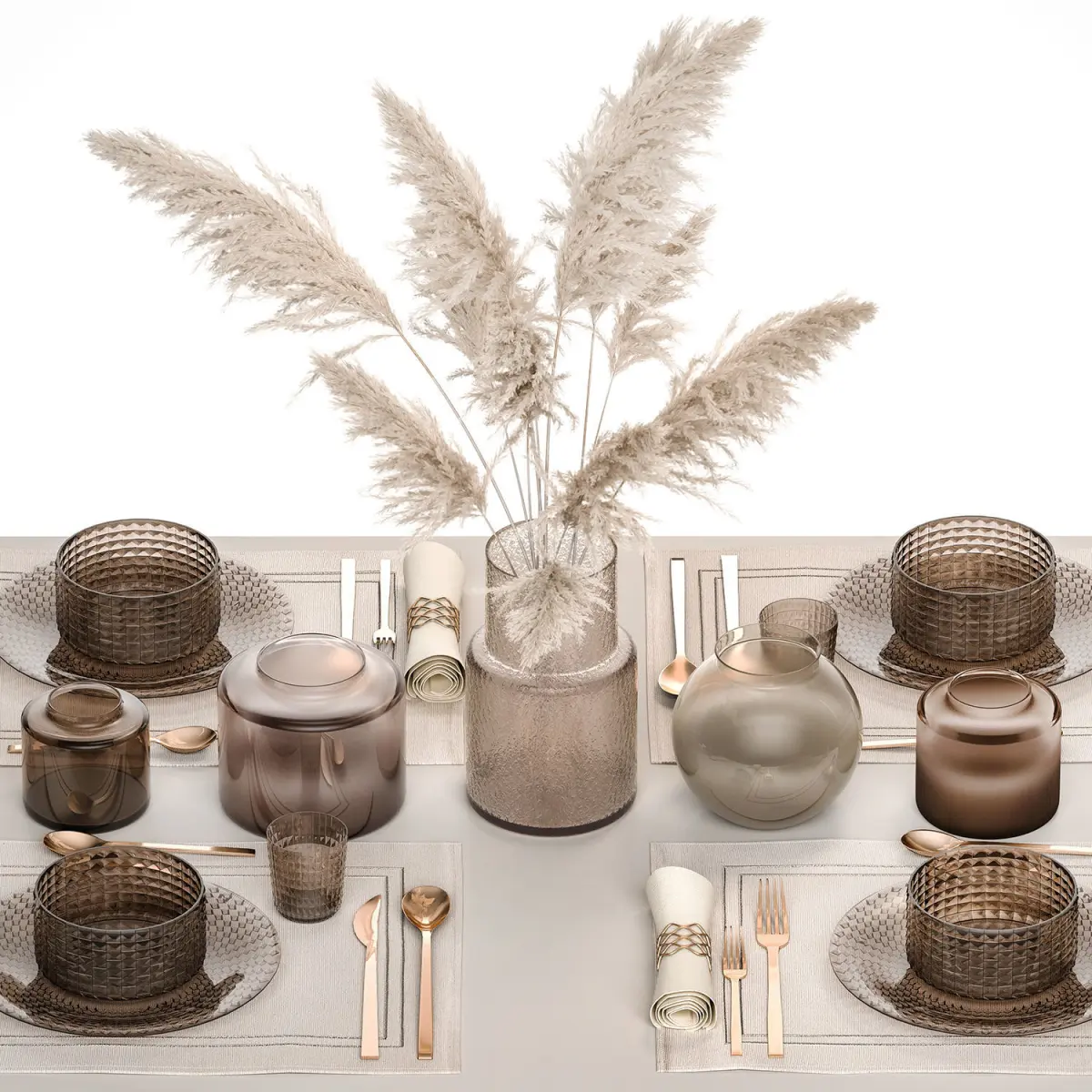Home Catalog table setting for 4 persons with a bouquet of pampas grass 3D model