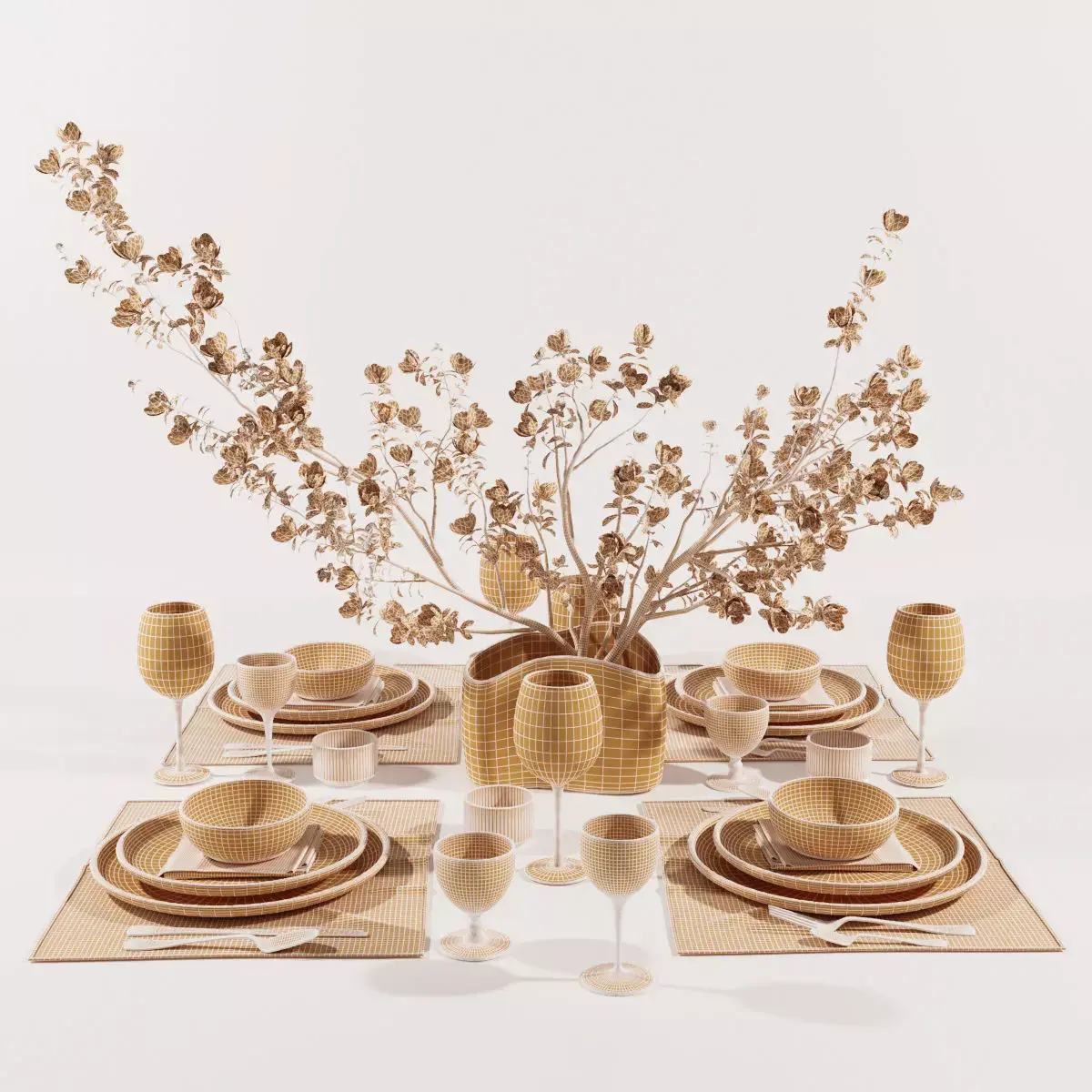 Table setting-H31with bouquet and objects for dining table.In the archive:max 2015 Corona5max2015 vray3.6OBJ filesmtl