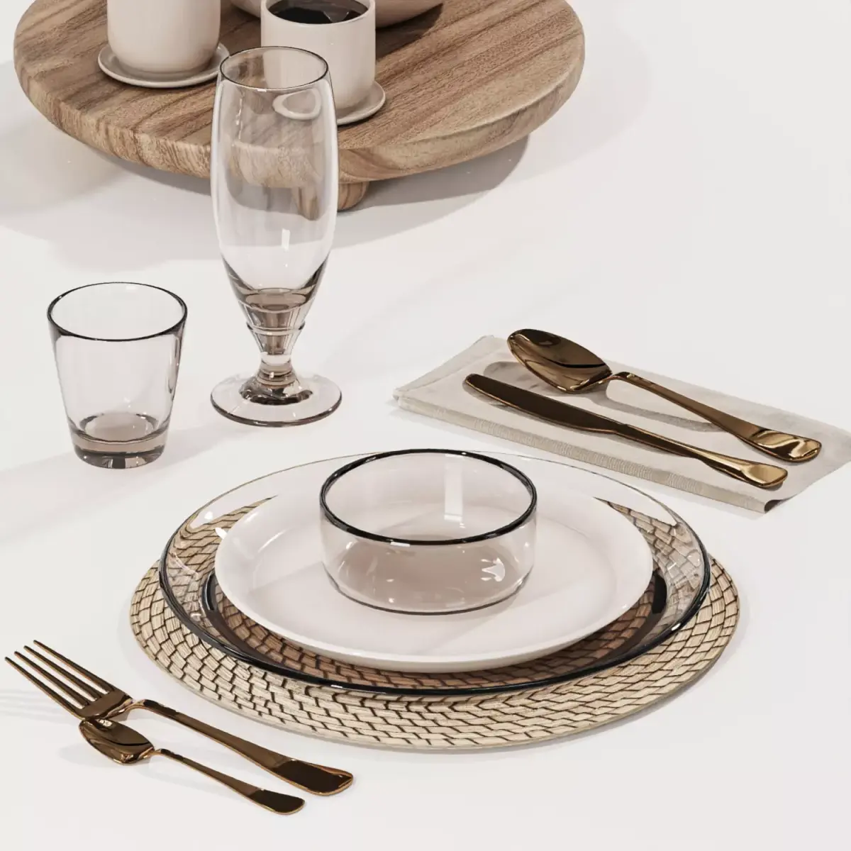 Table setting-H43with bouquet and objects for dining table.In the archive:max 2015 Corona5OBJ filesmtl