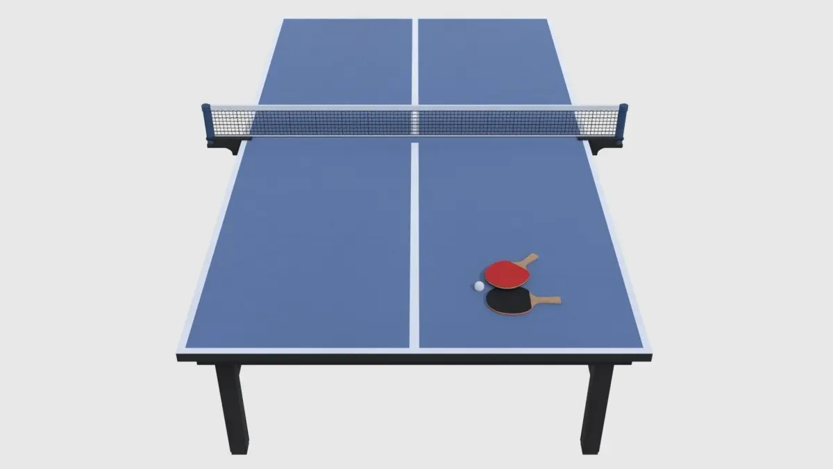Table tennis table with paddles and ball. Made in Blender and rendered with Cycles.Assets are in realistic dimensions measured in metres.