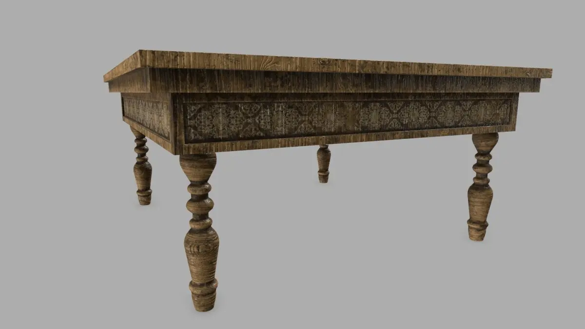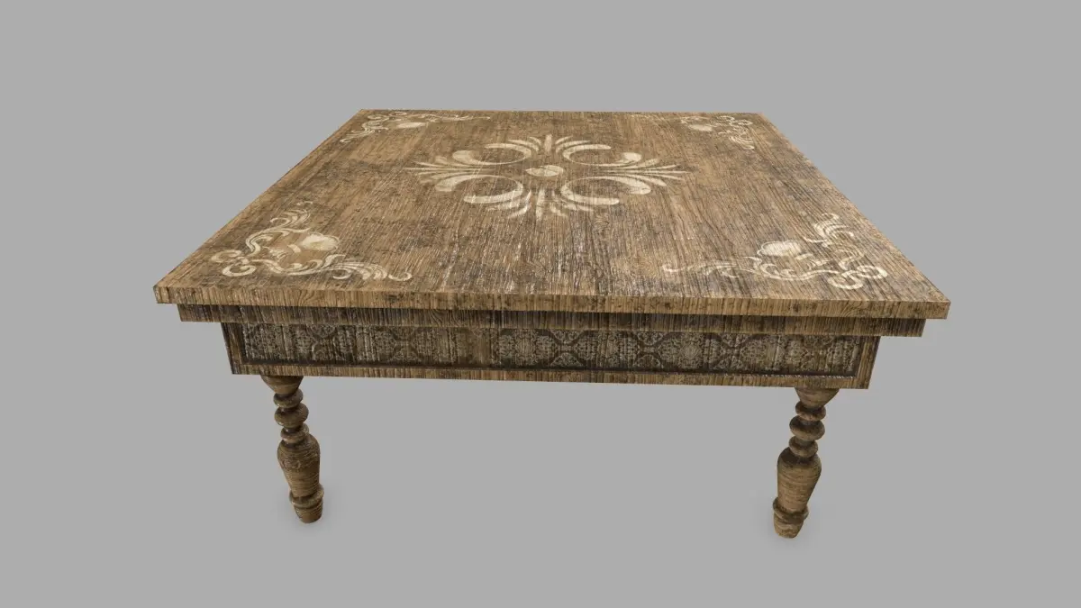 HomeCatalogTable wooden with ornate design Low-poly 3D model
