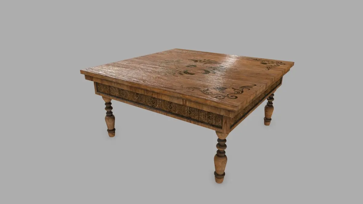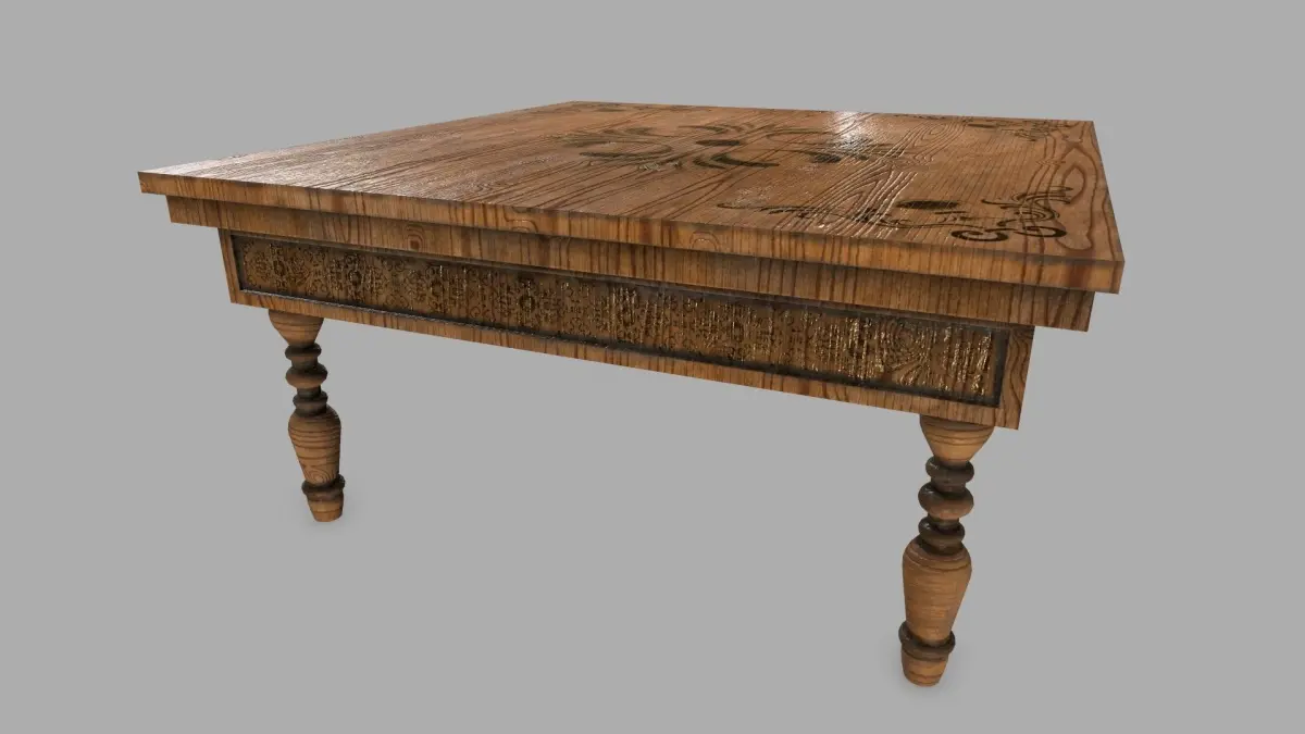 HomeCatalogTable wooden with ornate design Low-poly 3D model