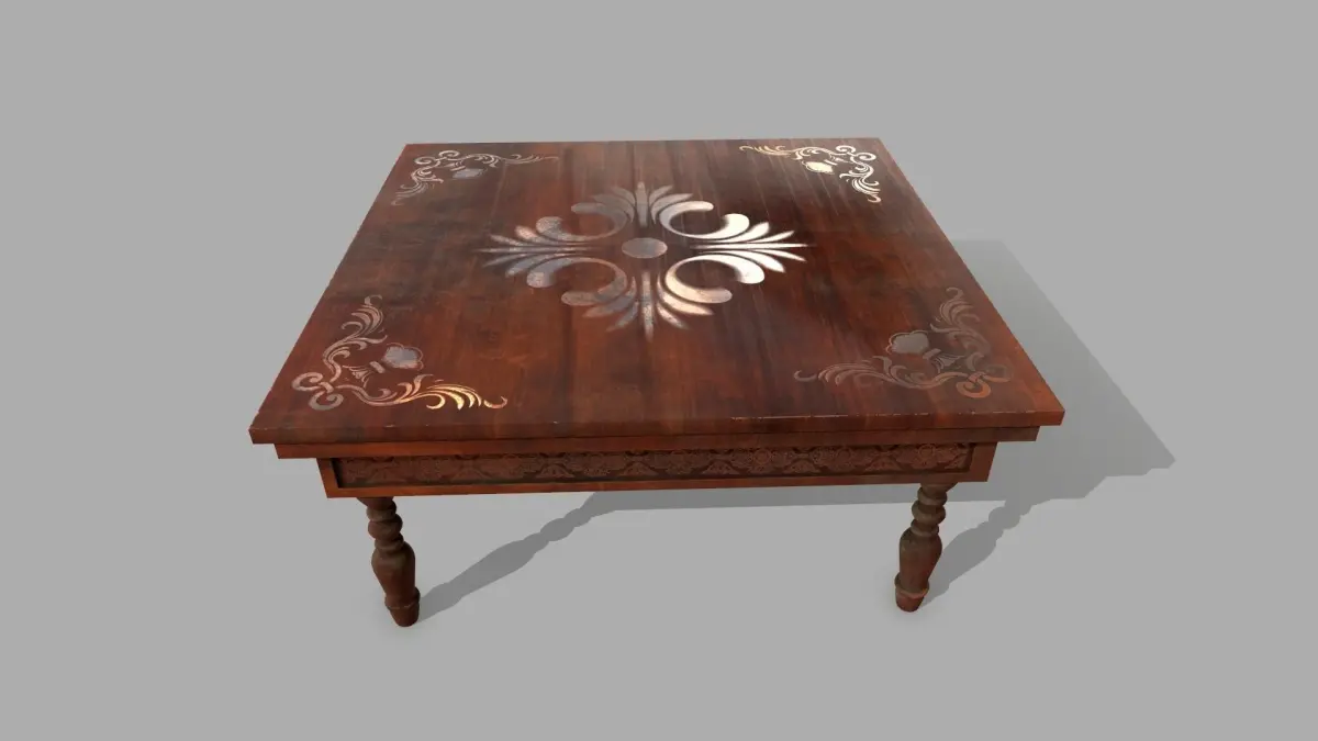 HomeCatalogTable wooden with ornate design Low-poly 3D model