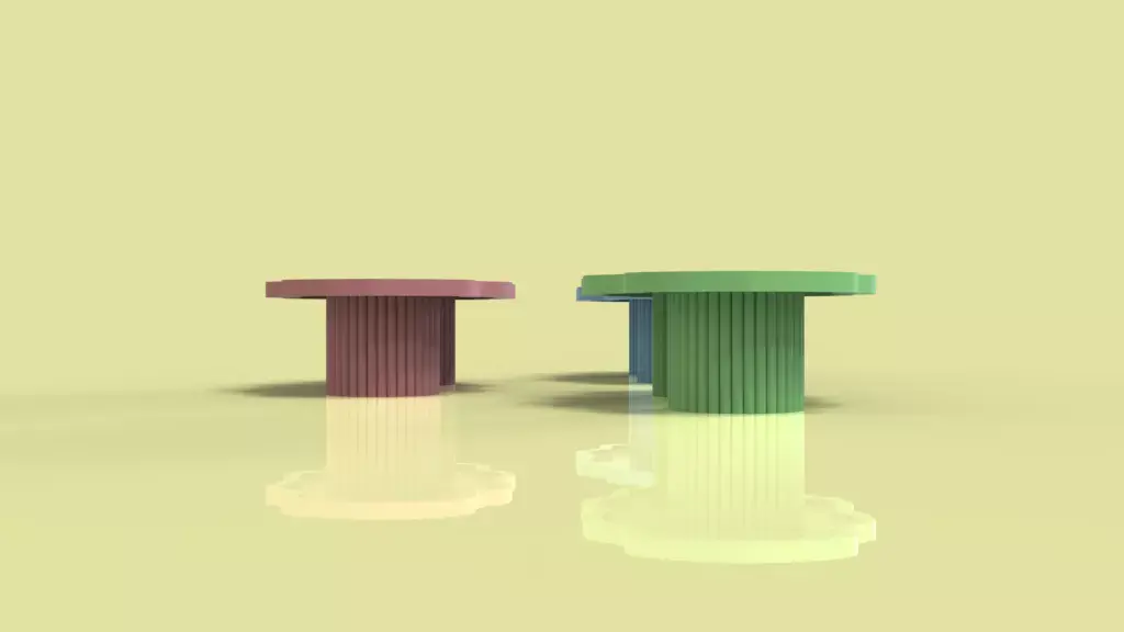 Perfect for playrooms, reading nooks, or creative corners, these tables invite storytelling, drawing, and daydreaming. Their soft pastel hues and sculptural forms spark joy while offering sturdy support for little hands and big ideas. Whether used individually or stacked as a vertical installation, they transform any space into a playful sanctuary.