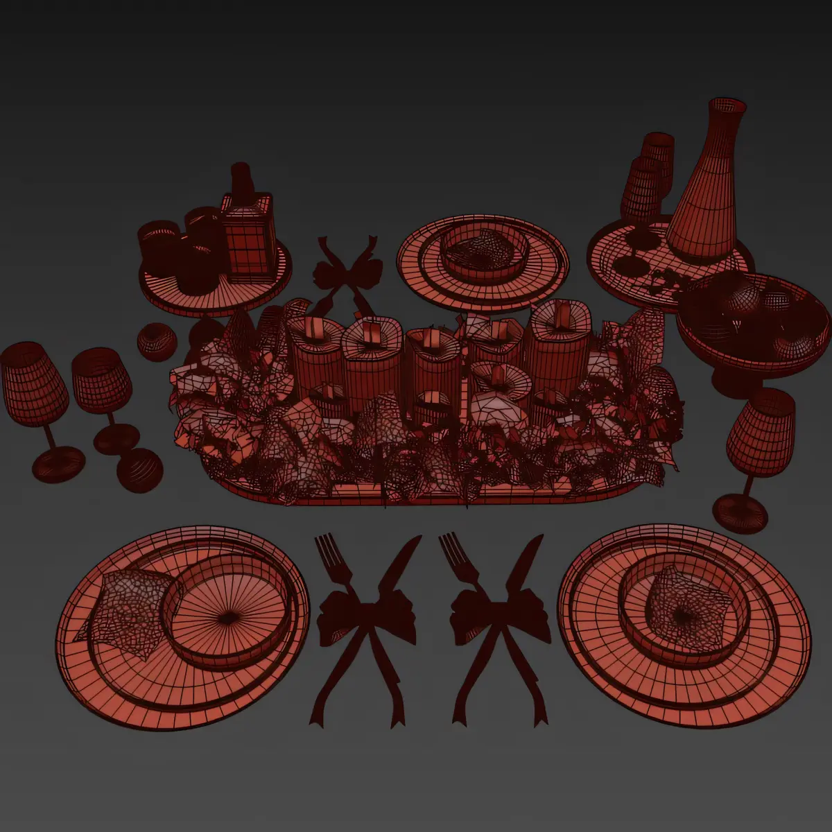 name Tableware set 038Model Parts: 38Render: Corona 12 vray 6Formats: 3Ds Max 2016Units:millimeterssoftwarem:3dsMax2016,Vray6 & Corona12Archive: vray 3ds max 2016 / corona 3ds max 2016 / corona .fbx / vray.fbx /Obj/ textures